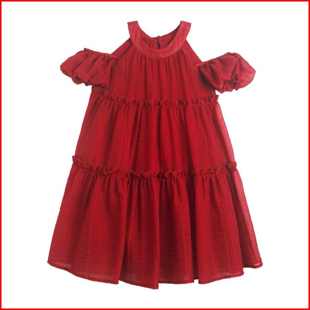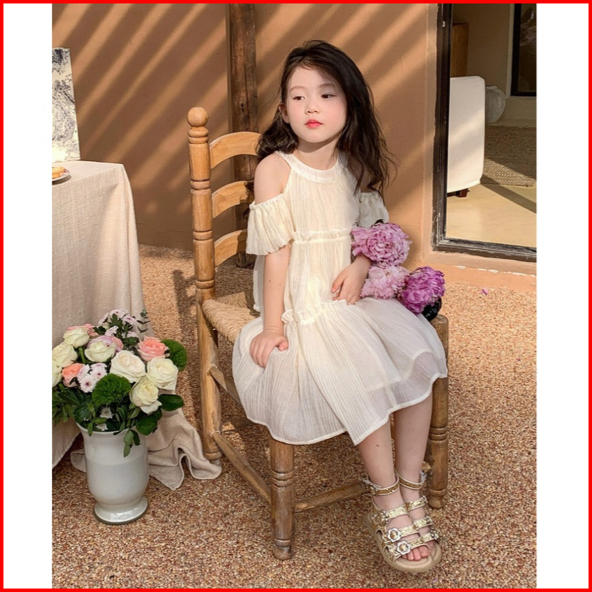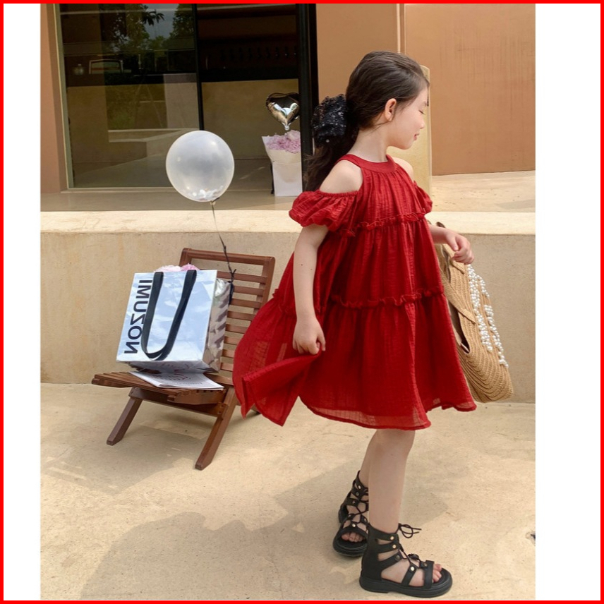 Meandboss Dr30 Dress Gaun Anak Perempuan Korea Ruffle Sabrina Cut Sleeve