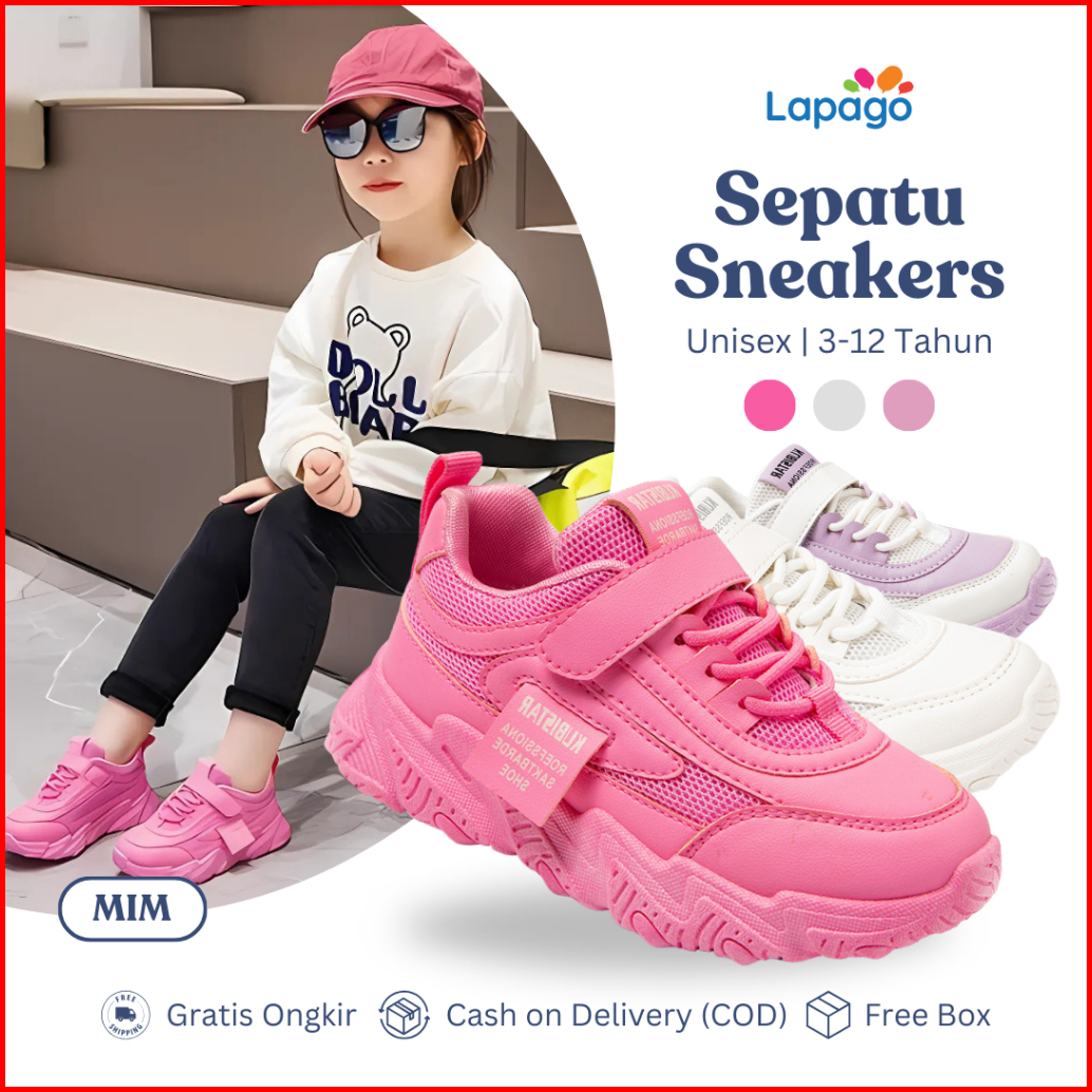 Lapago Free Box Sepatu Sneakers Casual Anak Laki Laki Perempuan Usia 3 - 12 Tahun Type Mim