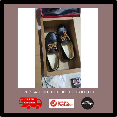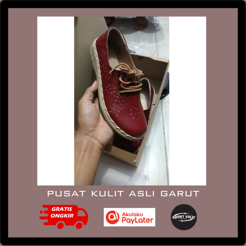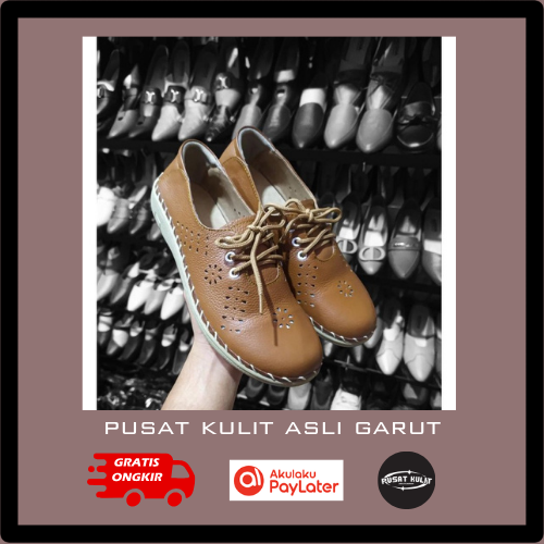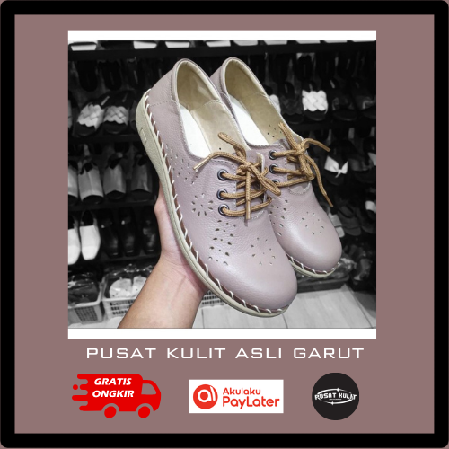 Sepatu Kulit Wanita Model Tali Motif Lubang Sol Karet Ringan Asli Garut PG677