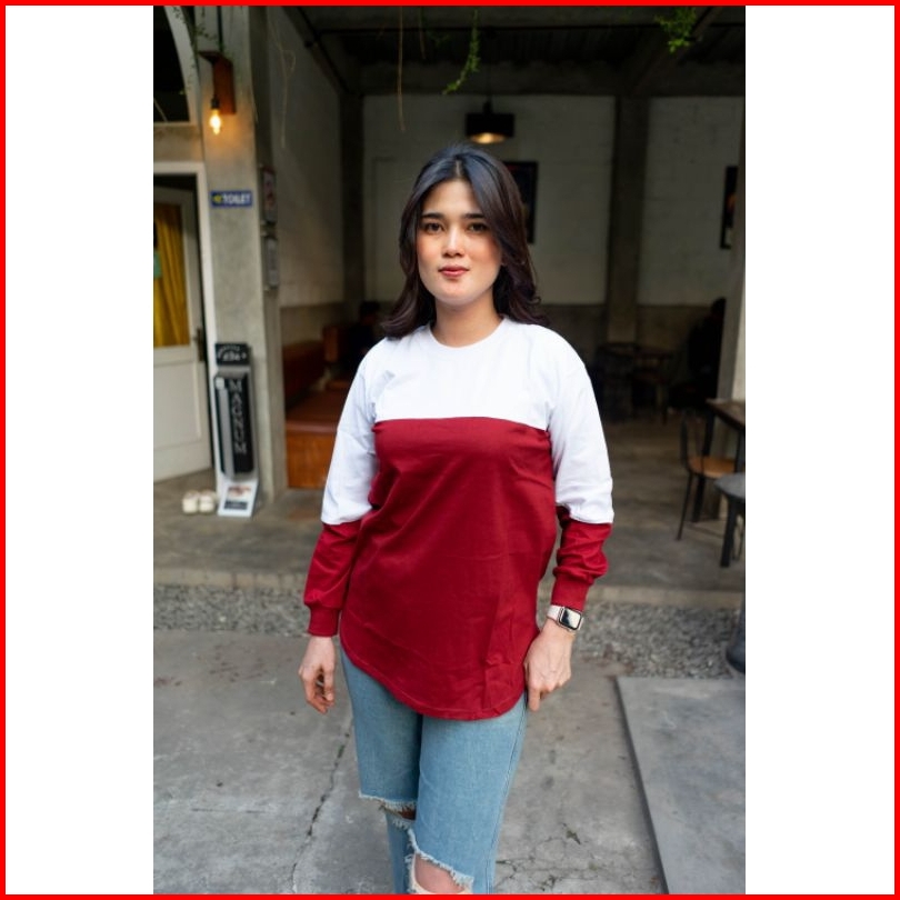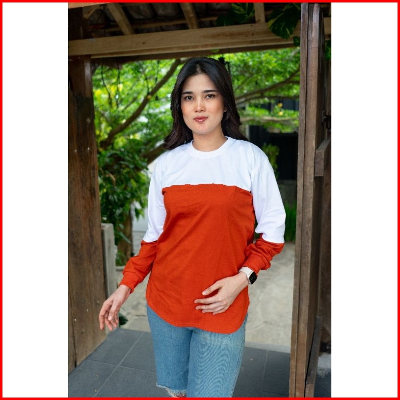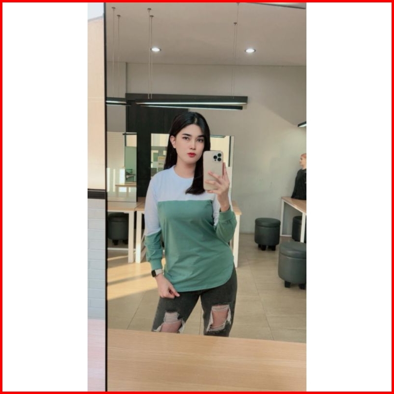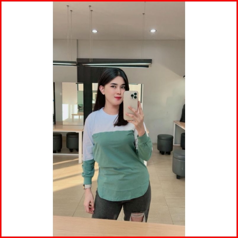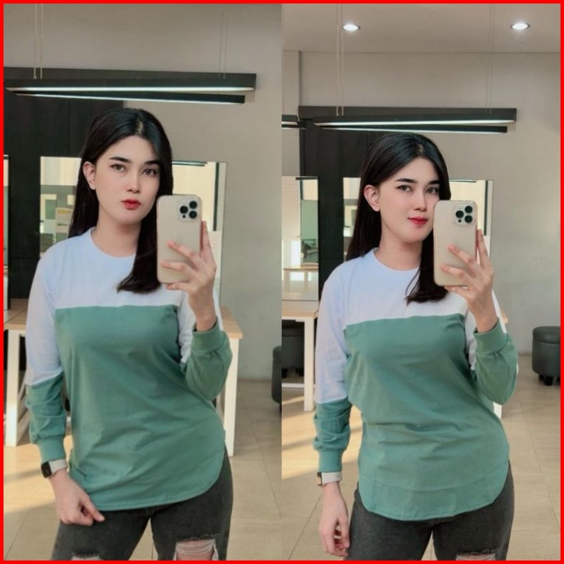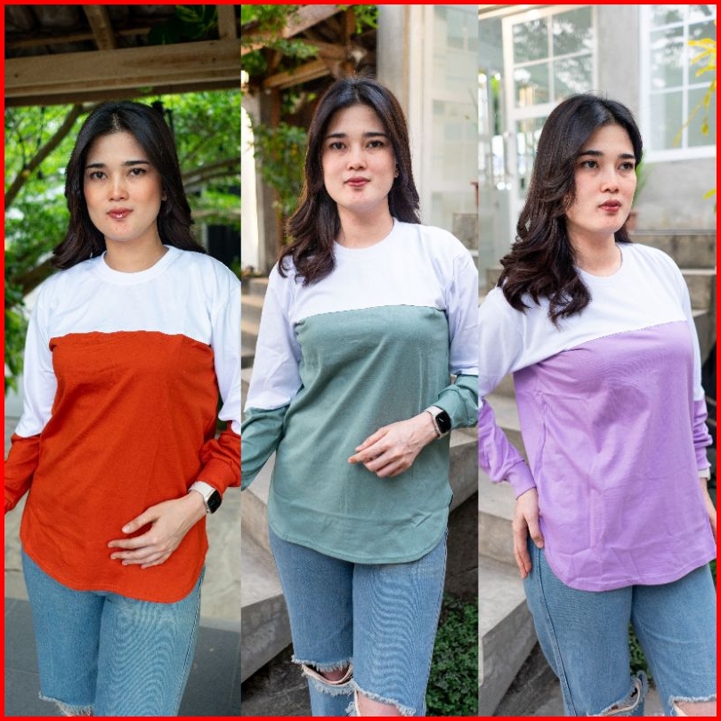 Adzillashop Kaos Wanita Lengan Panjang Kaos Wanita Kombinasi 2 Warna Model Oval Bawah Namina Original