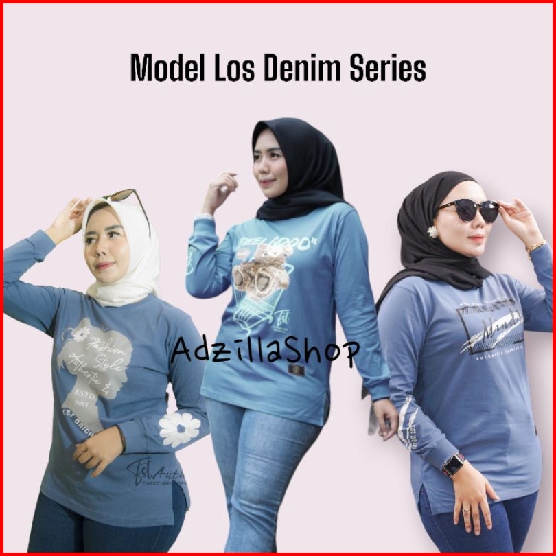 Adzillashop Kaos Wanita Kaos Wanita Warna Denim Lengan Panjang Original Dinaary Fashion Kekinian Wanita Terlaris.fst Ori