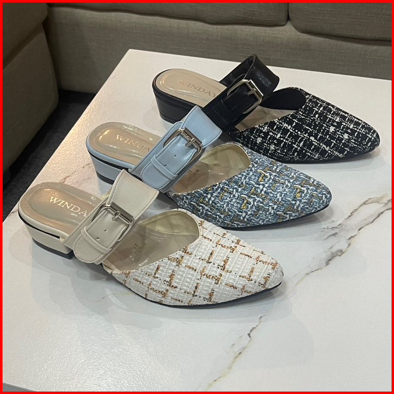Sandal Wanita Casanra Heels 3cm Dengan Gesper Brado Rajut