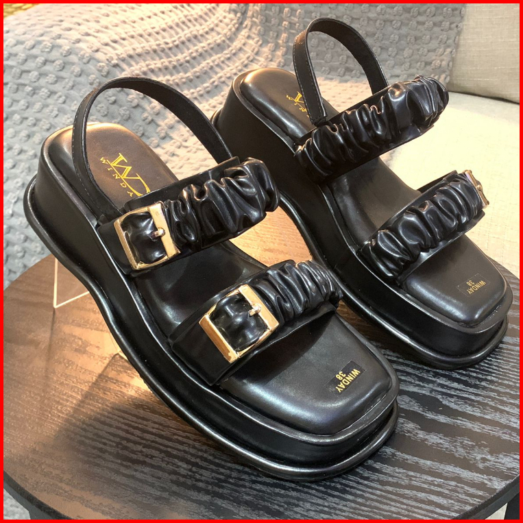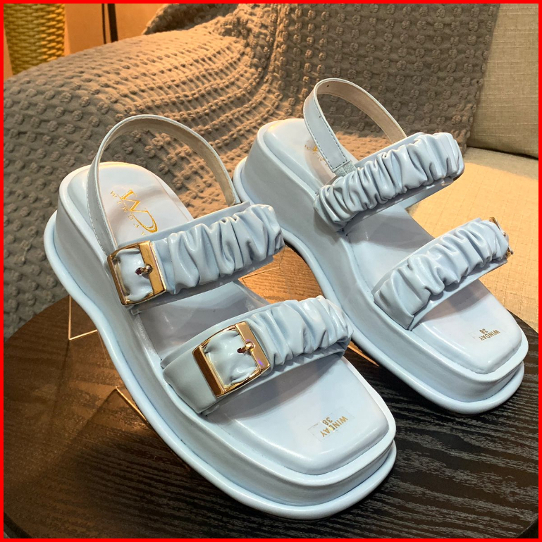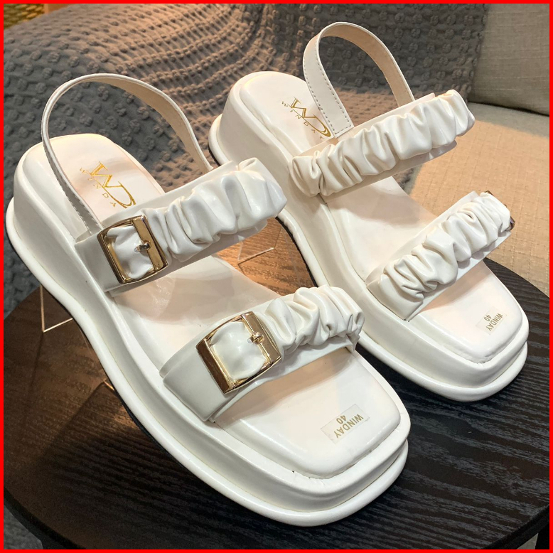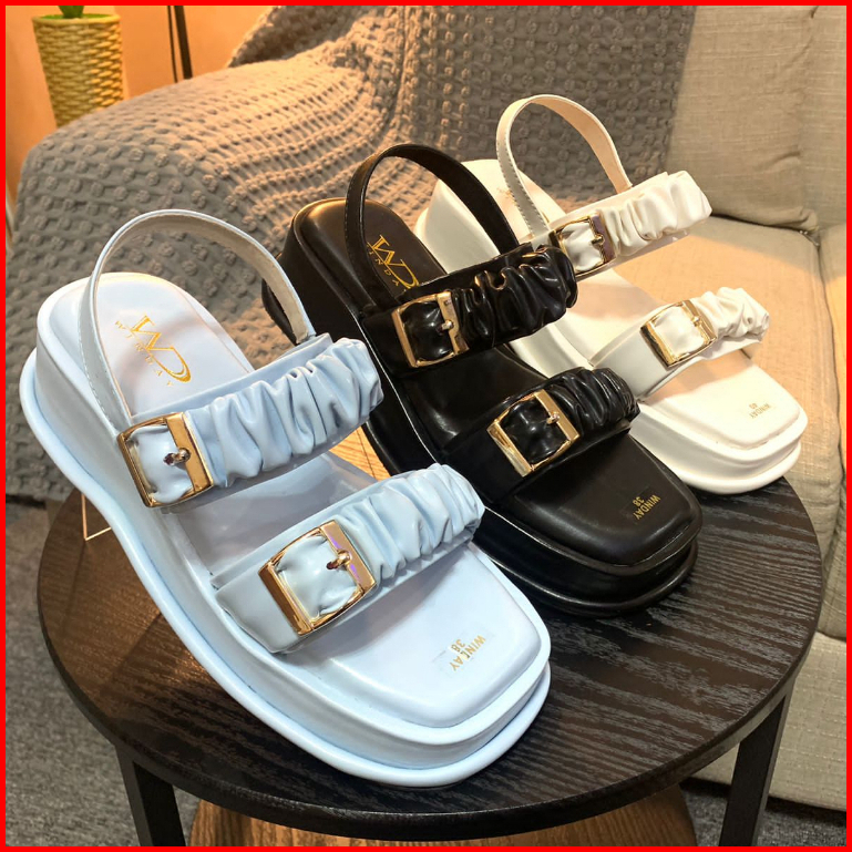 Windaili Arumi Sandal Flatfrom Wanita Tali Kerut Gesper