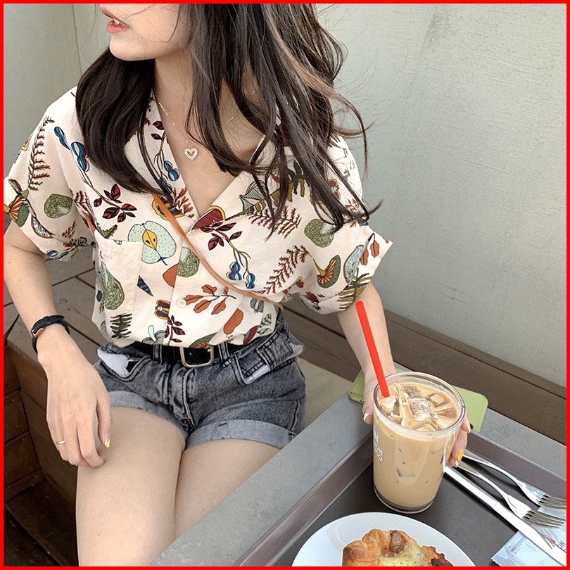 Karina Blouse Atasan Wanita Korea Motif Lengan Pendek