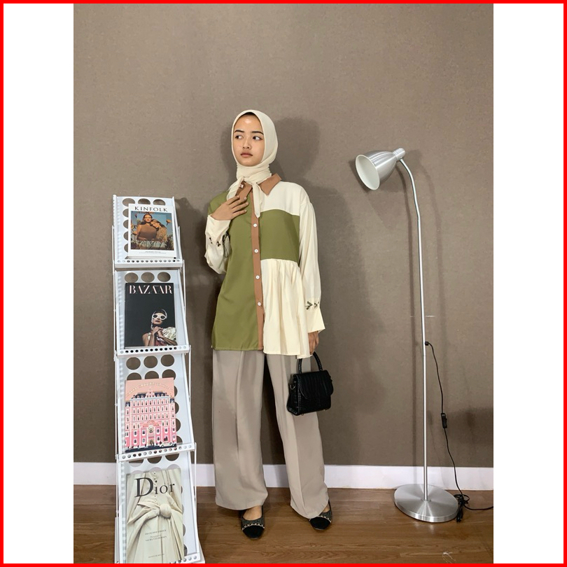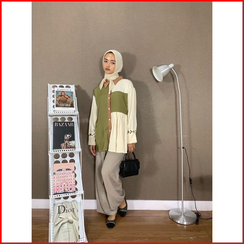 Fitri Kemeja Wanita Lengan Panjang Hijau Muslim