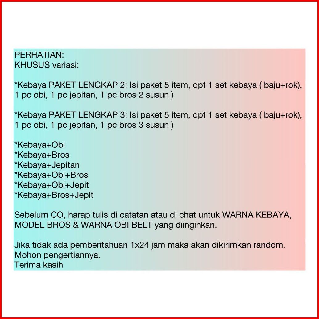Kb Gold (baju+rok), Kb Abu (baju+rok), Kb Lime (baju+rok), Kb Pink (baju+rok), Kb hitam (baju+rok), Kb marun (baju+rok), Paket Lengkap Abu 2, Paket Lengkap Gold 2, Pket Lengkap Hitam 2, Pket Lengkap Marun 2, Paket Lengkap Pink 2, Pket Lengkap Lime 2, Paket Lengkap Gold 3, Pket Lengkap Marun 3, Paket Lengkap Pink 3, Abu + Bros 2 susun, Abu + Bros 3 susun, Abu + Obi, Pink + Bros 2 susun, Pink + Bros 3 susun, Pink+ Obi, Lime + Bros 2 susun, Lime + Bros 3 susun, Lime + Obi, Marun + Bros 2 susun, Marun + Bros 3 susun, Marun + Obi, Hitam + Bros 2 susun, Hitam + Bros 3 susun, Hitam + Obi, Gold + Bros 2 susun, Gold + Bros 3 susun, Gold + Obi
