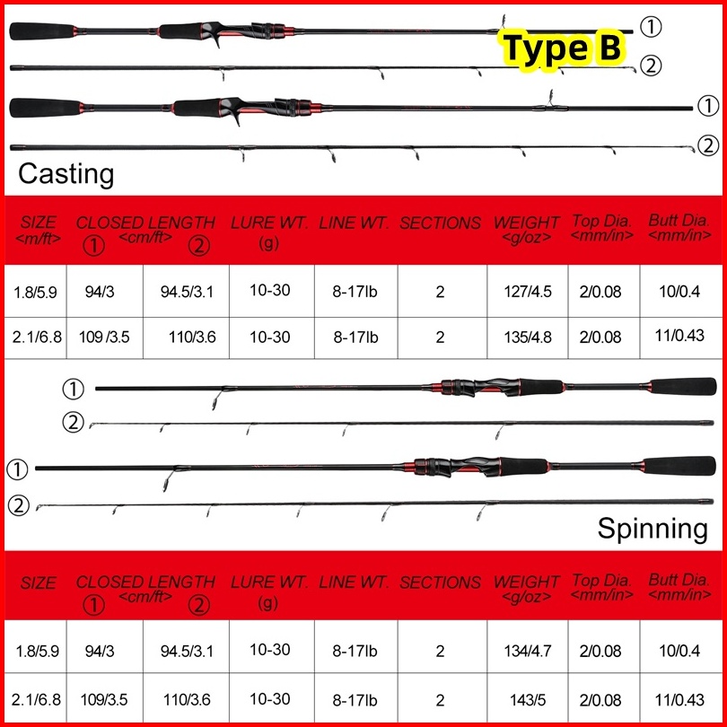 A-spinning rod, A-Casting rod, B-1.8m Spinning rod, B-2.1m Spinning rod, B-1.8m Casting rod, B-2.1m Casting rod, C-1.8m Spinning rod, C-2.1m Spinning rod, C-1.8m Casting rod, C-2.1m Casting rod, D-1.8M Spinning rod, D-1.8M Casting rod, E-1.75M Spinning, E-1.75M Casting, F-1.8M biru spinning, F-1.8M biru Casting, F-2.1M biru spinning, F-2.1M biru Casting, F-1.8 hijau spinning, F-1.8M hijau Casting, F-2.1 hijau spinning, F-2.1 hijau Casting, G-1.65M Spinning, G-1.65M Casting, H-1.5M Spinning, H-1.5M Casting