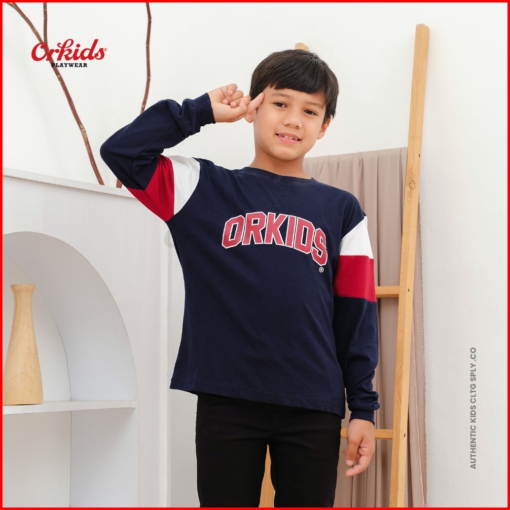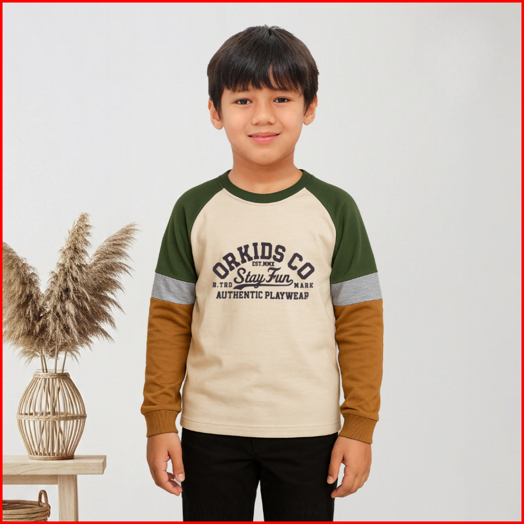 Orkids Kaos Panjang Anak Laki-laki Umur 1 - 12 Tahun Bahan Katun Combed 24 Reglan Tazer Bw Almon