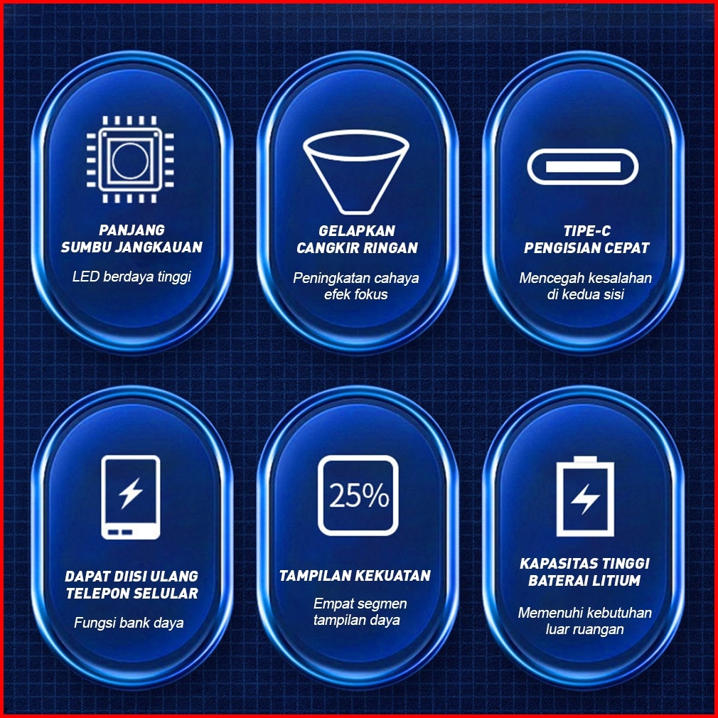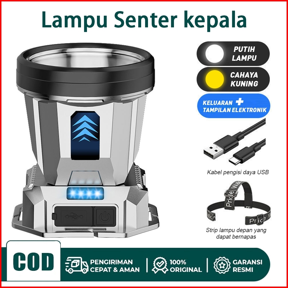 Senter Tahan Air Led 1000w Super Terang Luar Ruangan Yang Dapat Diisi Ulang Usb Senter Kepala Senter Berkemah