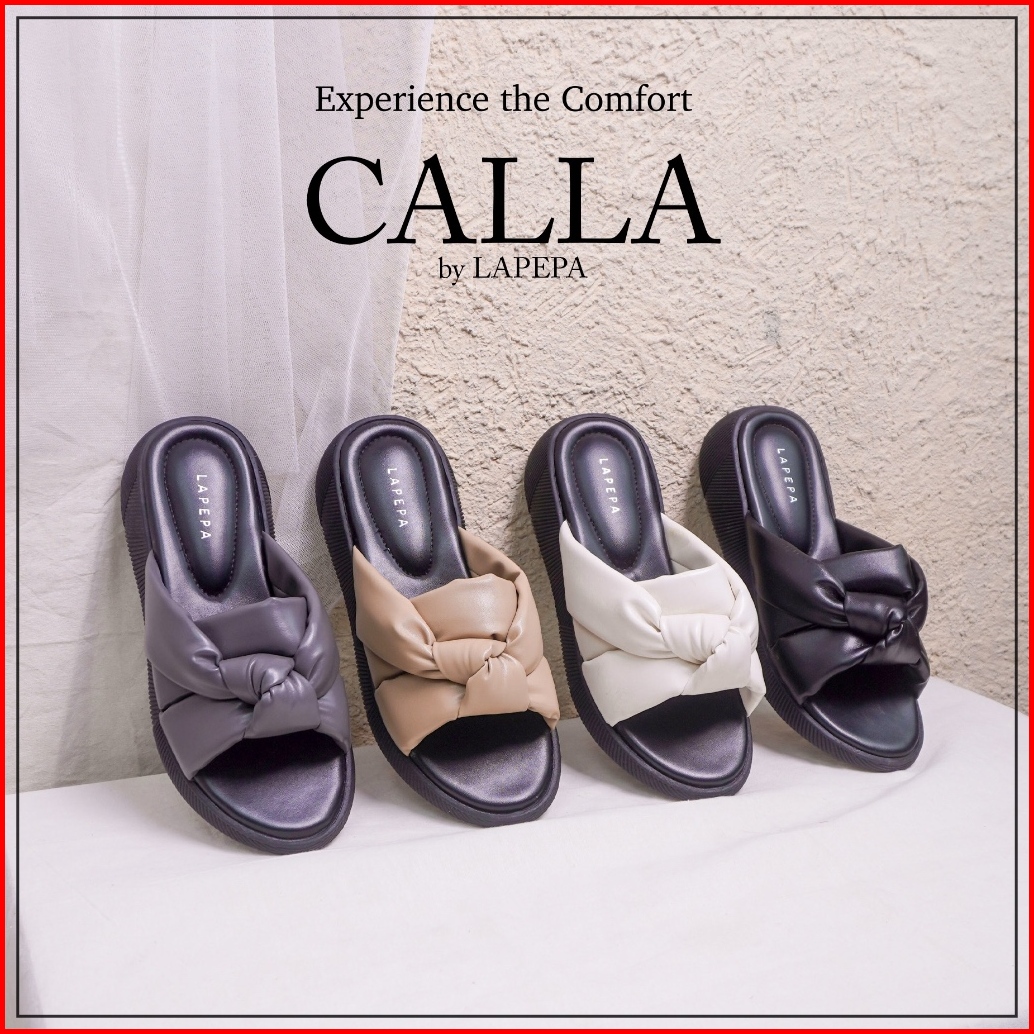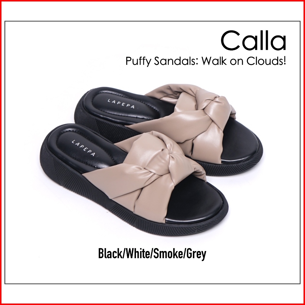 Lapepa Calla Sandal Wanita Kekinian Simple Elegan Sendal Puffy Cewek Flat Casual Empuk Terbaru