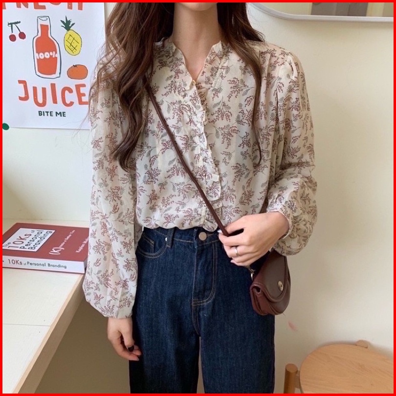 Belicia Atasan Wanita Motif Bunga Lengan Panjang