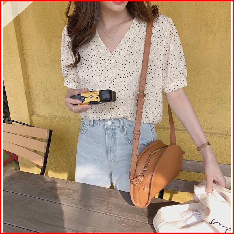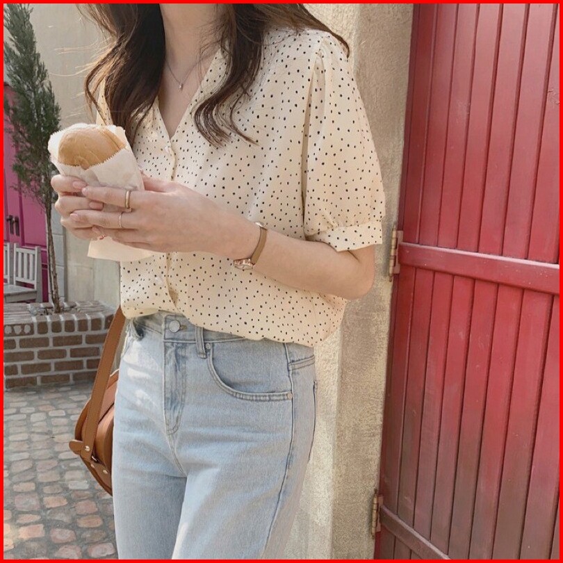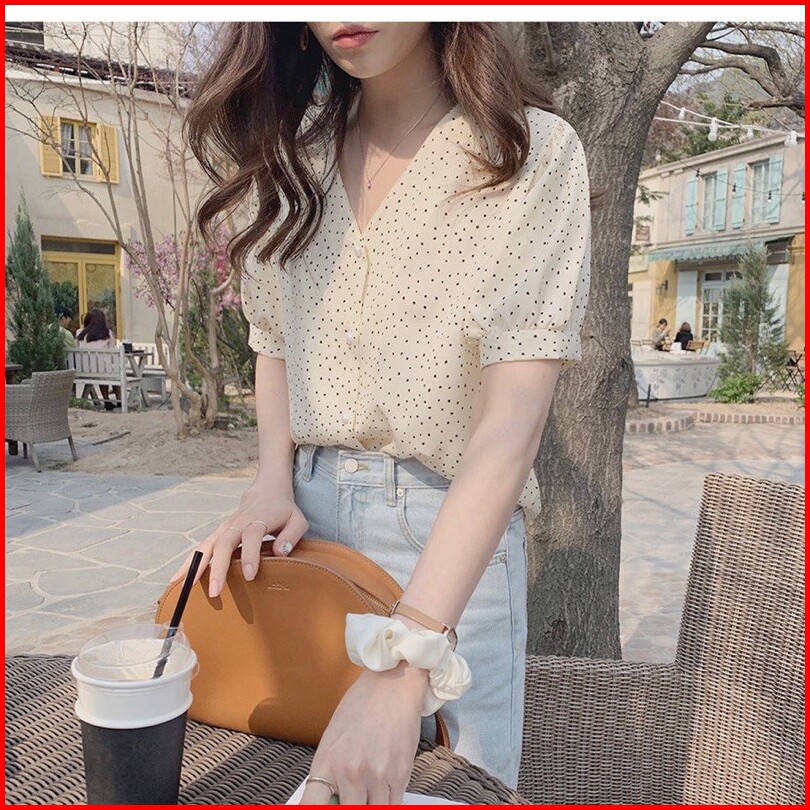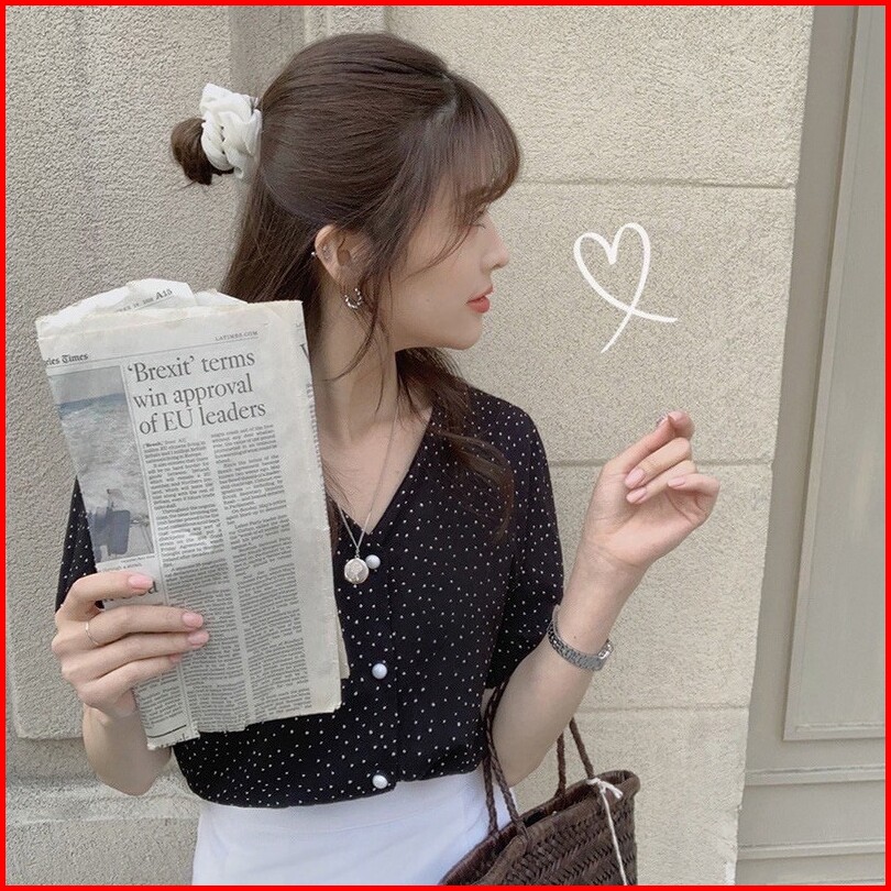 Fina Atasan Baju Wanita Lengan Pendek Polkadot Korean Style