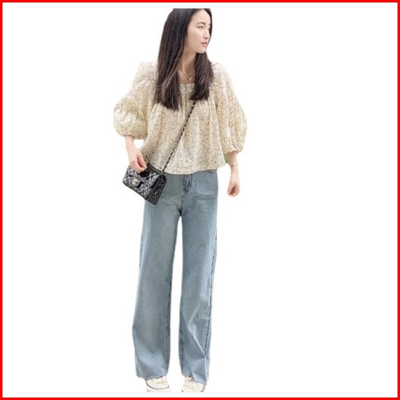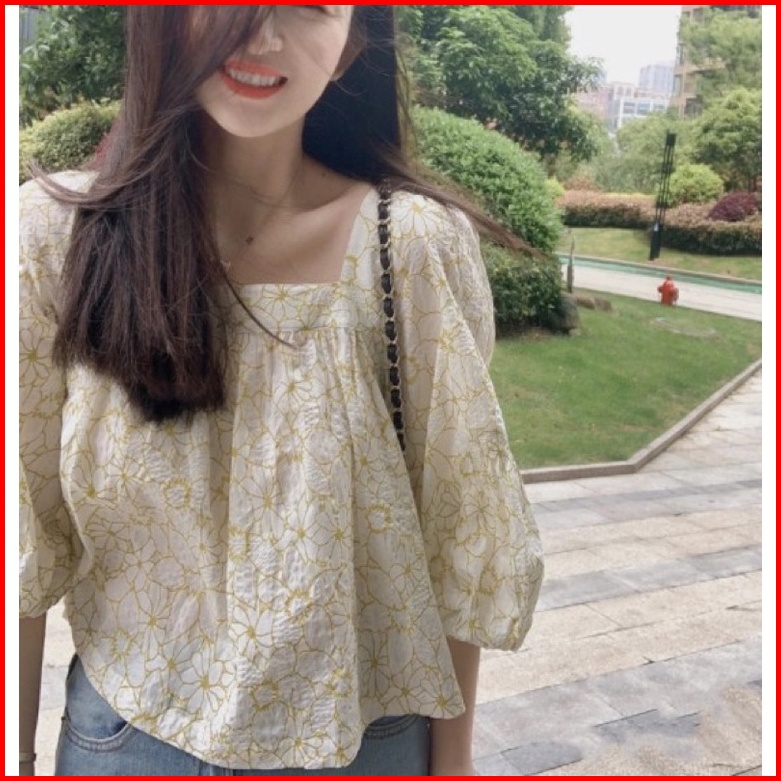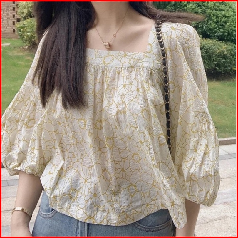 Stella Atasan Blouse Wanita Motif Bunga Korean Style Lengan Balon