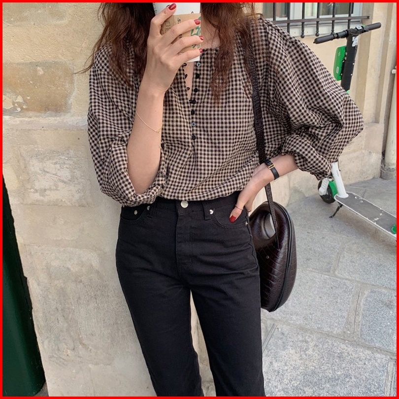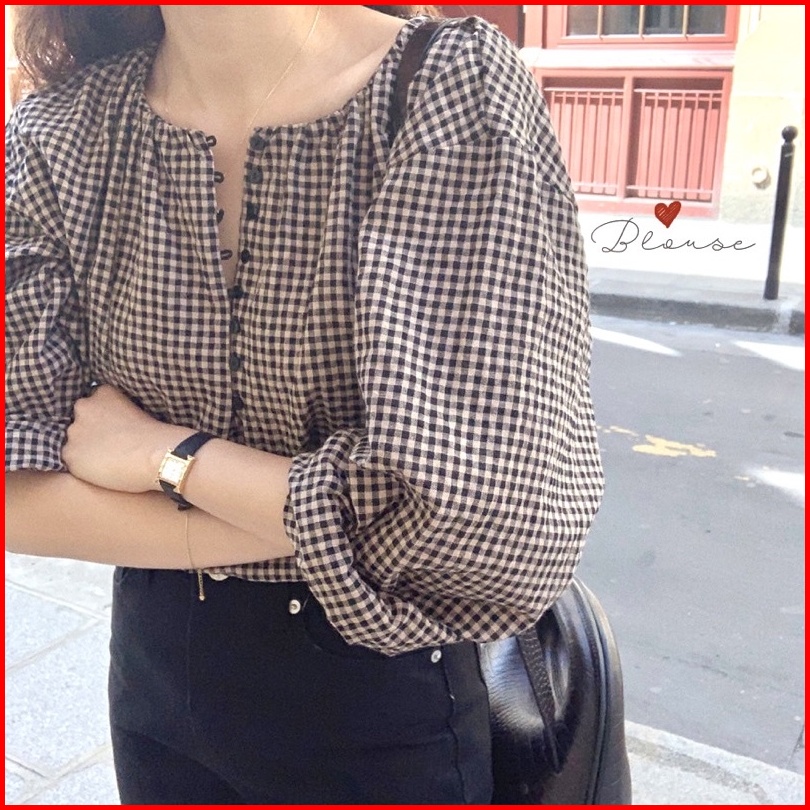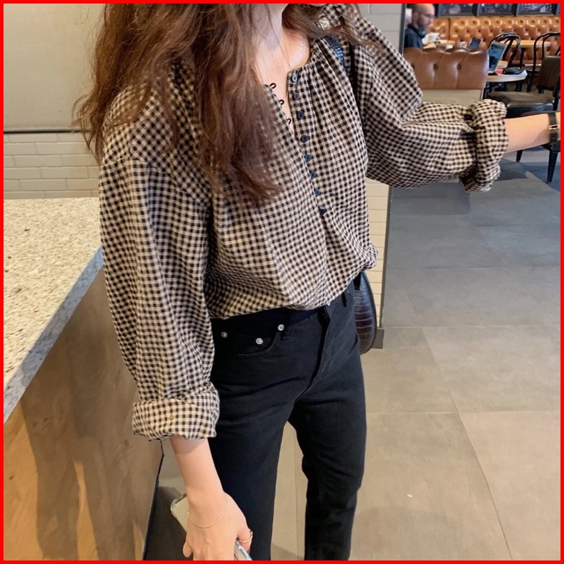 Jane Atasan Blouse Kotak Wanita Lengan Panjang Hijab Friendly Casual