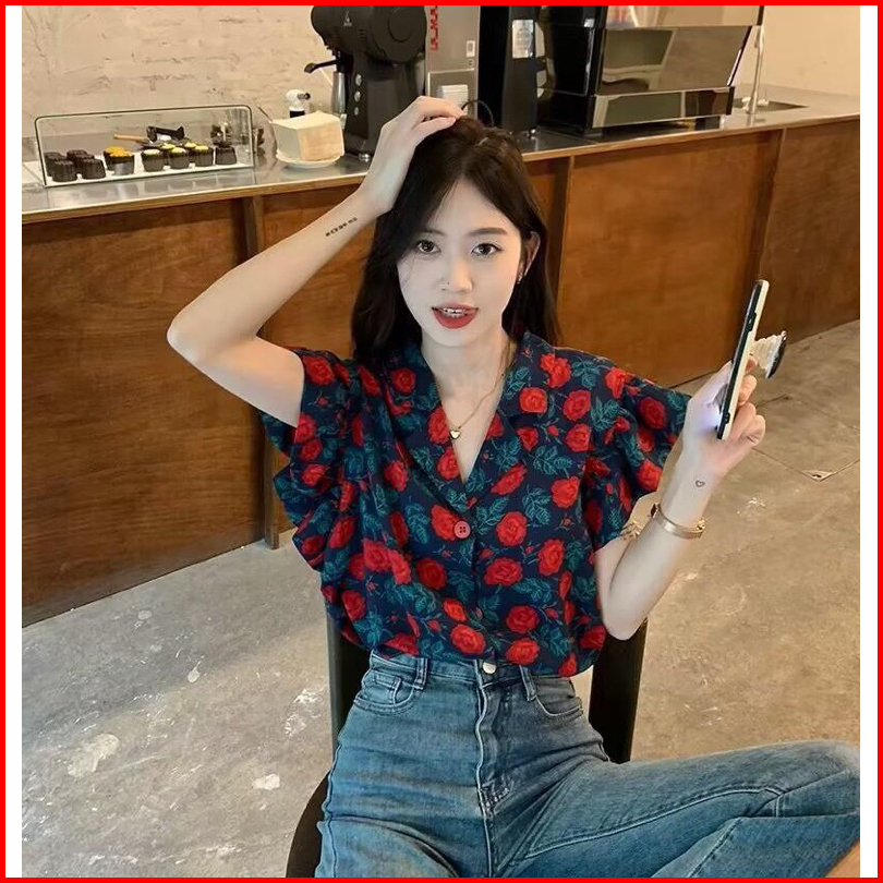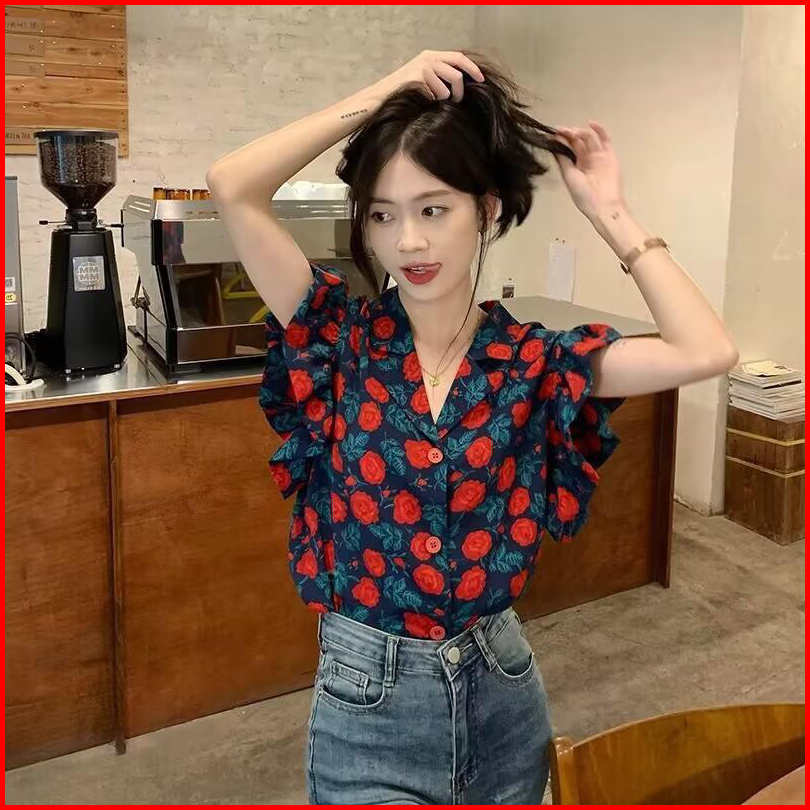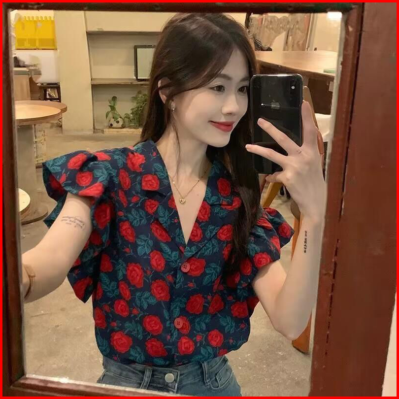Cassie Blouse Wanita Rumbai Renda Bunga Motif Valentine