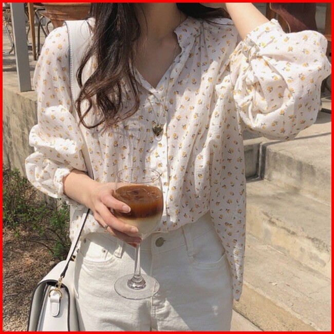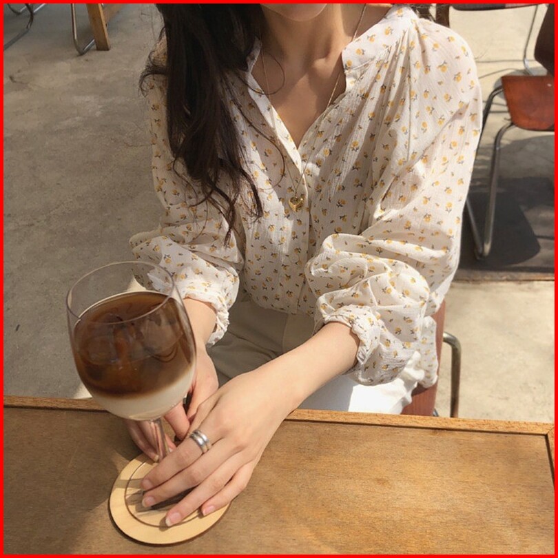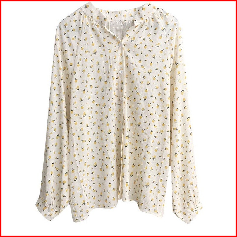 Dea Atasan Blouse Korea Wanita Putih Floral Bunga Lengan Panjang Chiffon Hijab Friendly Casual