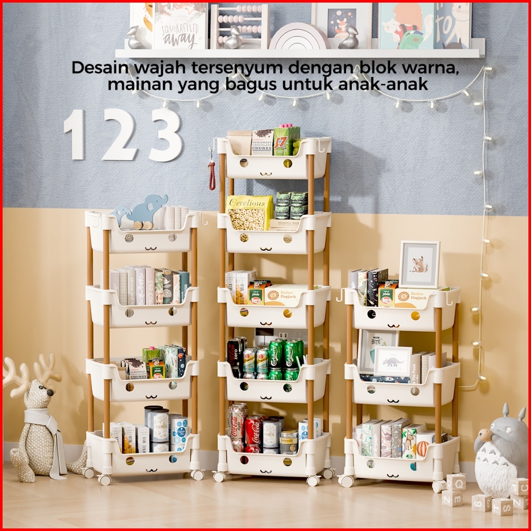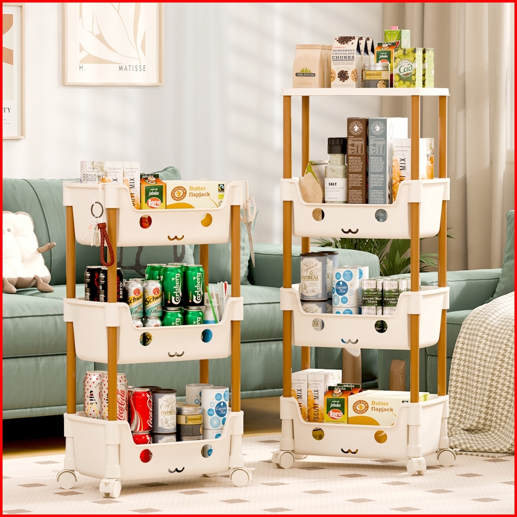 Homes Rak Susun 4 Tingkat Serbaguna Rak Kosmetik Rak Penyimpanan Rak Troli Susun Roda