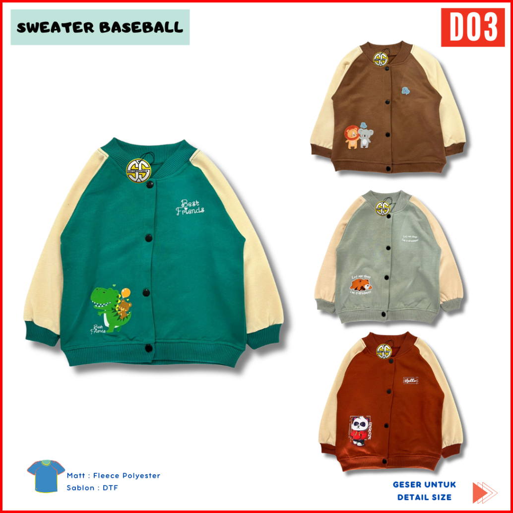 Sweater Baseball Anak Laki-laki Perempuan Usia 1-6 Tahun Unik Lucu - Ssd03
