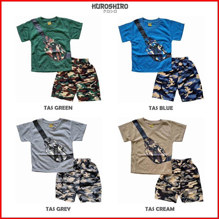 Kuroshiro - Setelan Baju Anak Laki Laki 1-9 Tahun Army Tas Kaos Kuroshiro