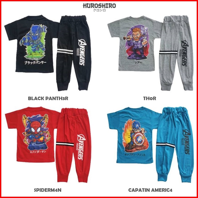 Kuroshiro - Setelan Baju Anak Laki Laki 1-9 Tahun Joger Aveng3rs Kaos Kuroshiro