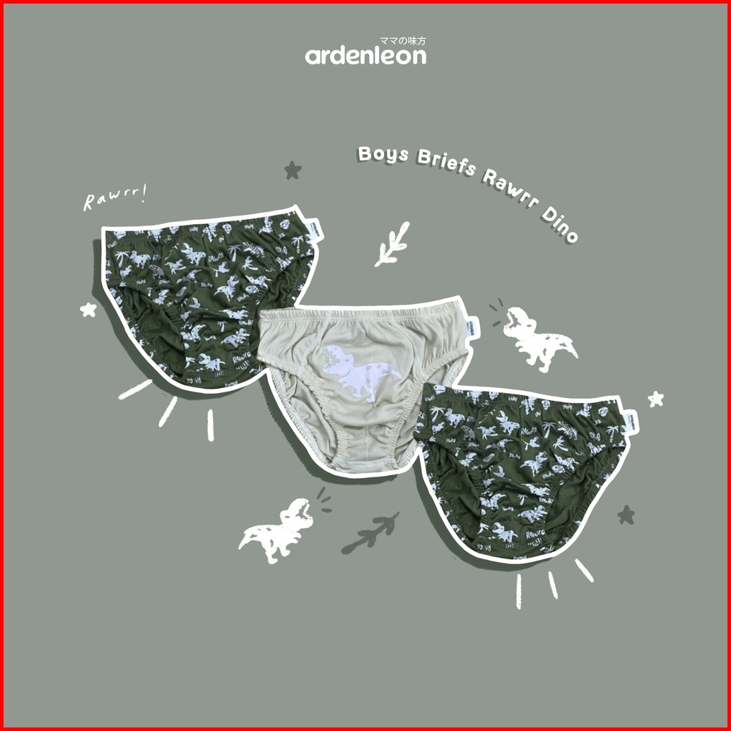 Ardenleon Celana Dalam Anak Laki Laki Boys Briefs Rawrr Dino 3 Pcs