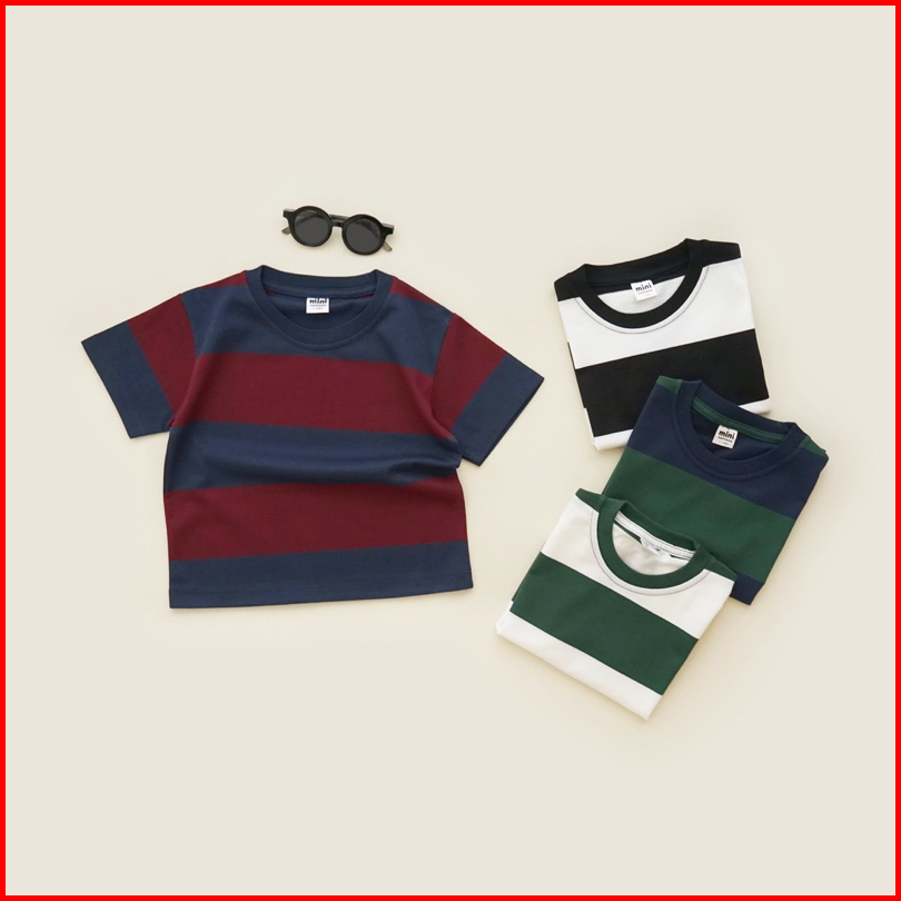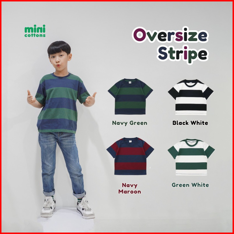 Minicottons Kaos Oversize Stripe Tshirt Kaos Salur Garis Unisex 1-12 Tahun