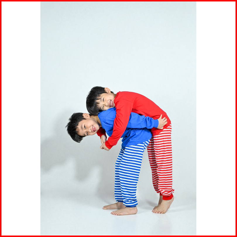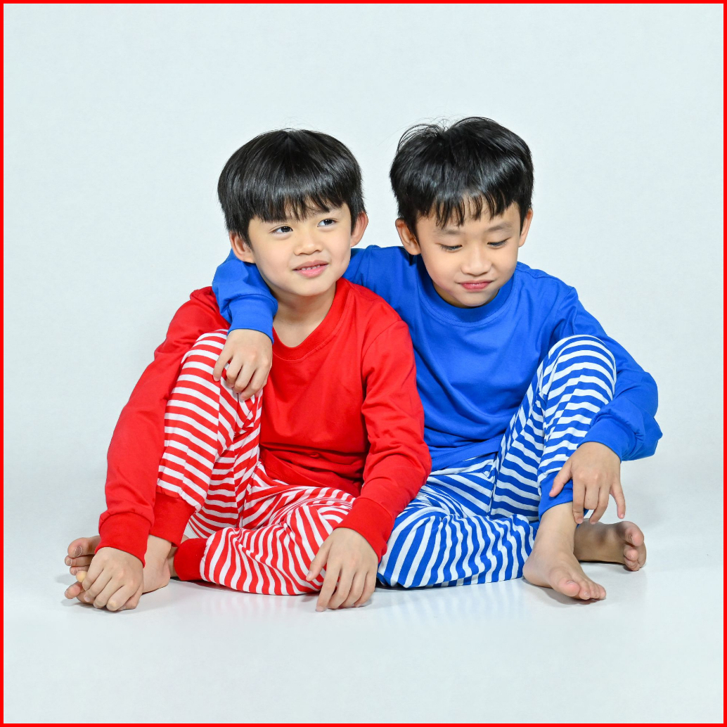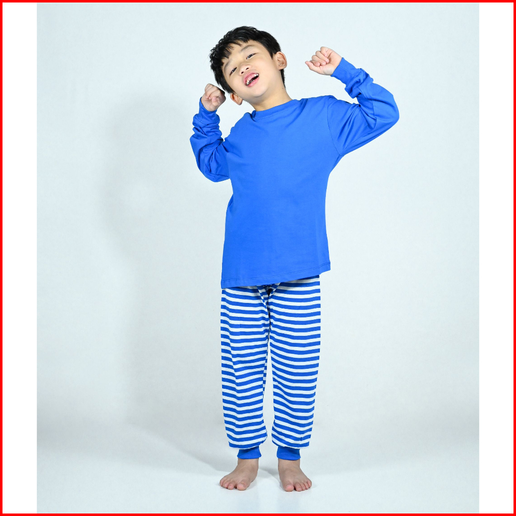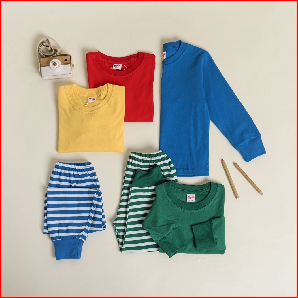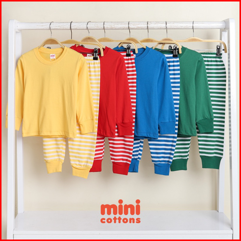 Mini Cottons Unisex Piyama Set Stripe Salur Setelan Baju Tidur Anak 1-12 Tahun