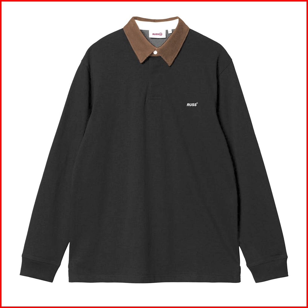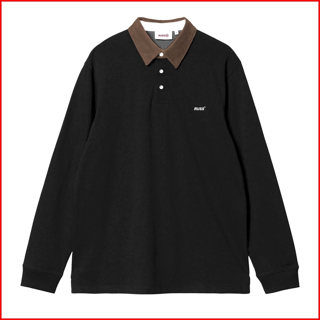 Russ Poloshirt Rugby Pria Kerah Corduroy Fillest Black Up To Big Size