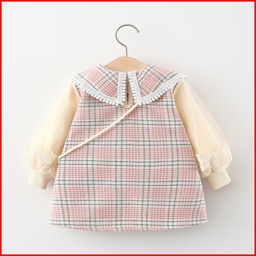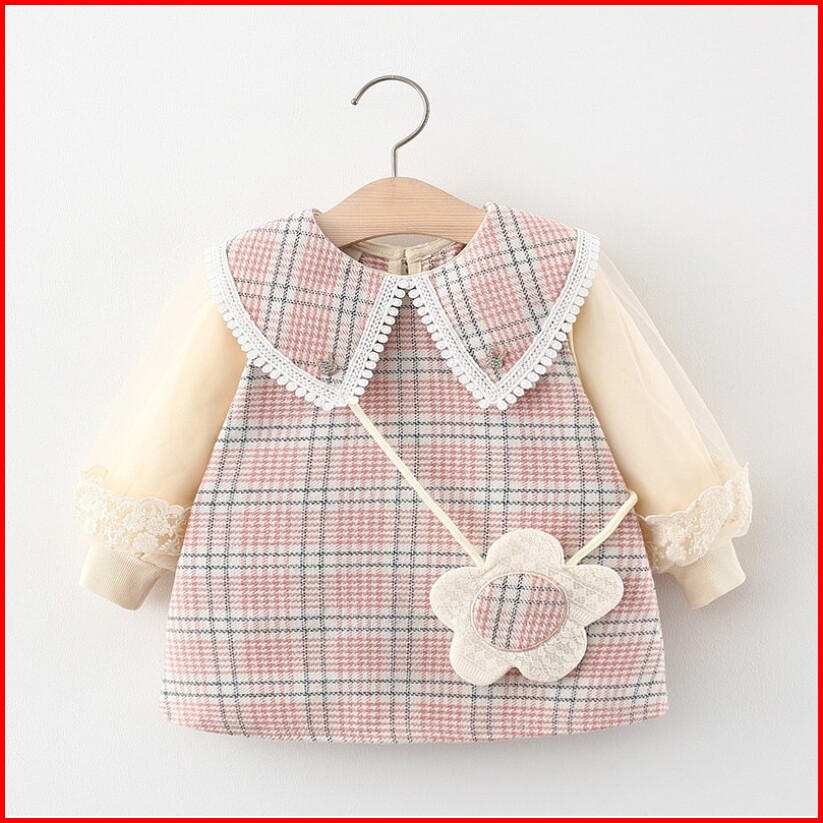 Dtb01 Dress Bayi Dress Anak Pakaian Anak Perempuan Motif Kotak-kotak Dengan Aksesories Tas Bunga