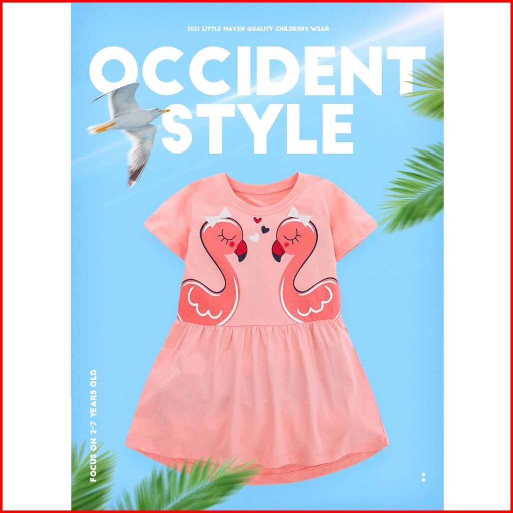 Baju Pakaian Dress Fashion Anak Perempuan Little Maven Import Qw366 Flaminggo Pink