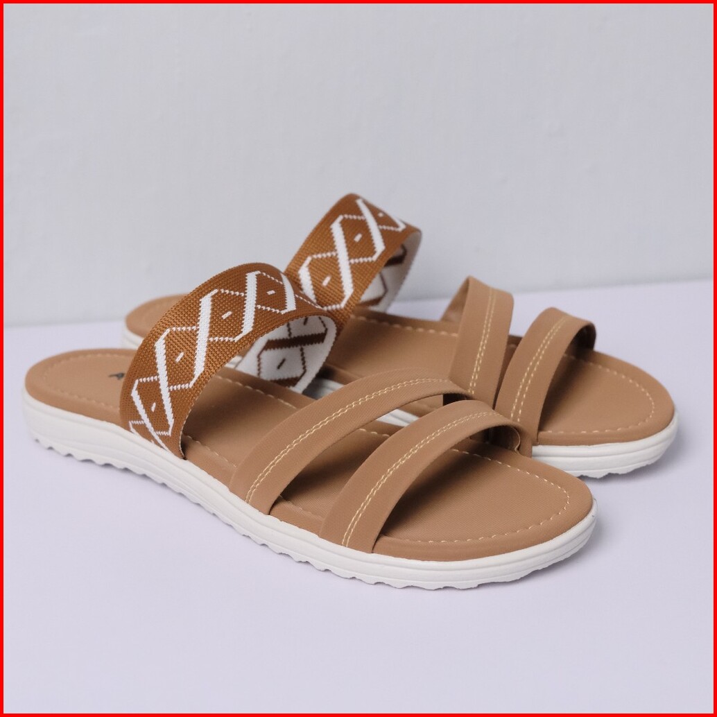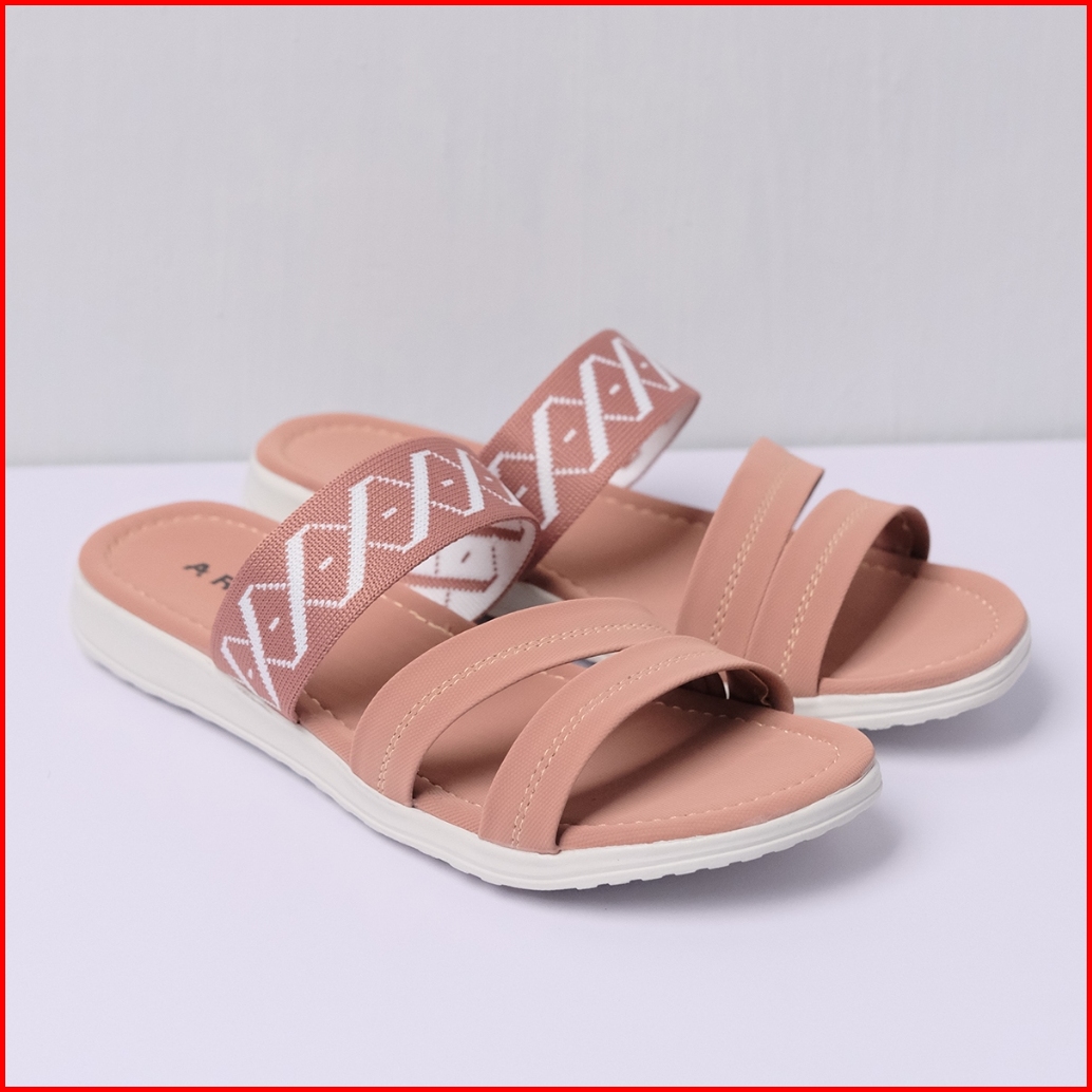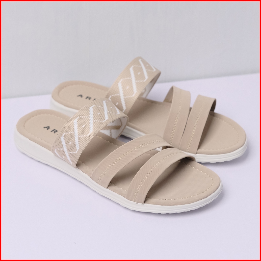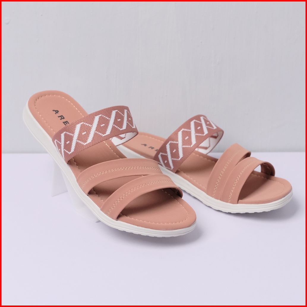 Arezo - Sandal Wanita Wedges Kekinian All Color Sendal Cewek Kondangan Flat Color Series Karet