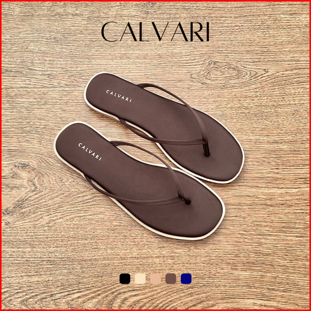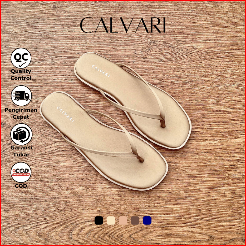 Calvari - Levi Sandal Wanita Korea Teplek Casual Kekinian Size 36 - 40 Sendal Flat Cewek Kasual