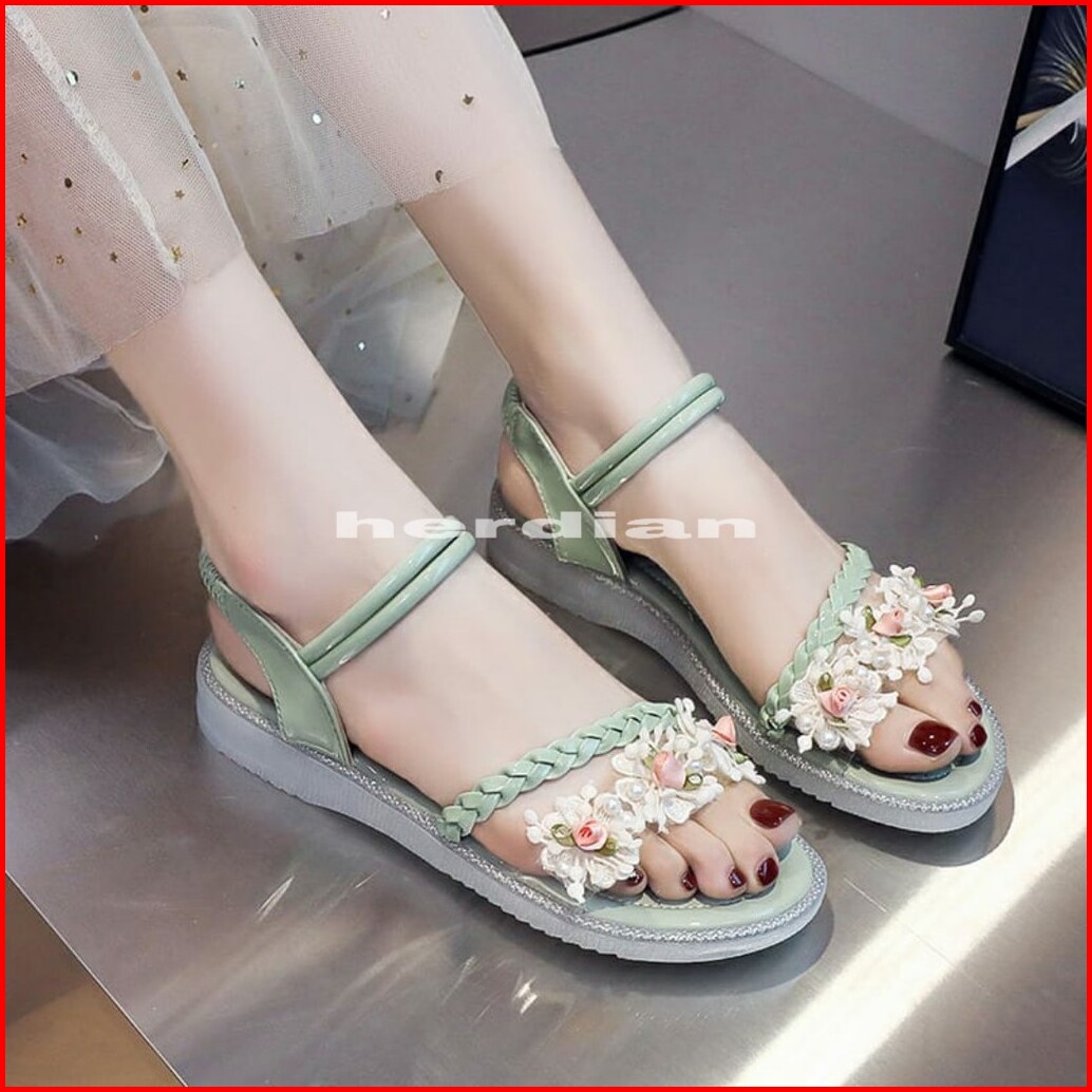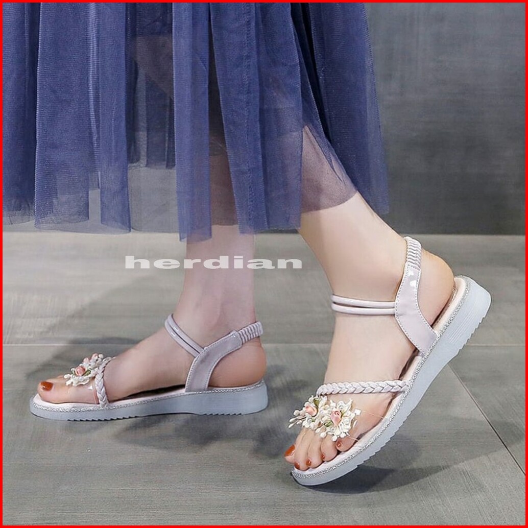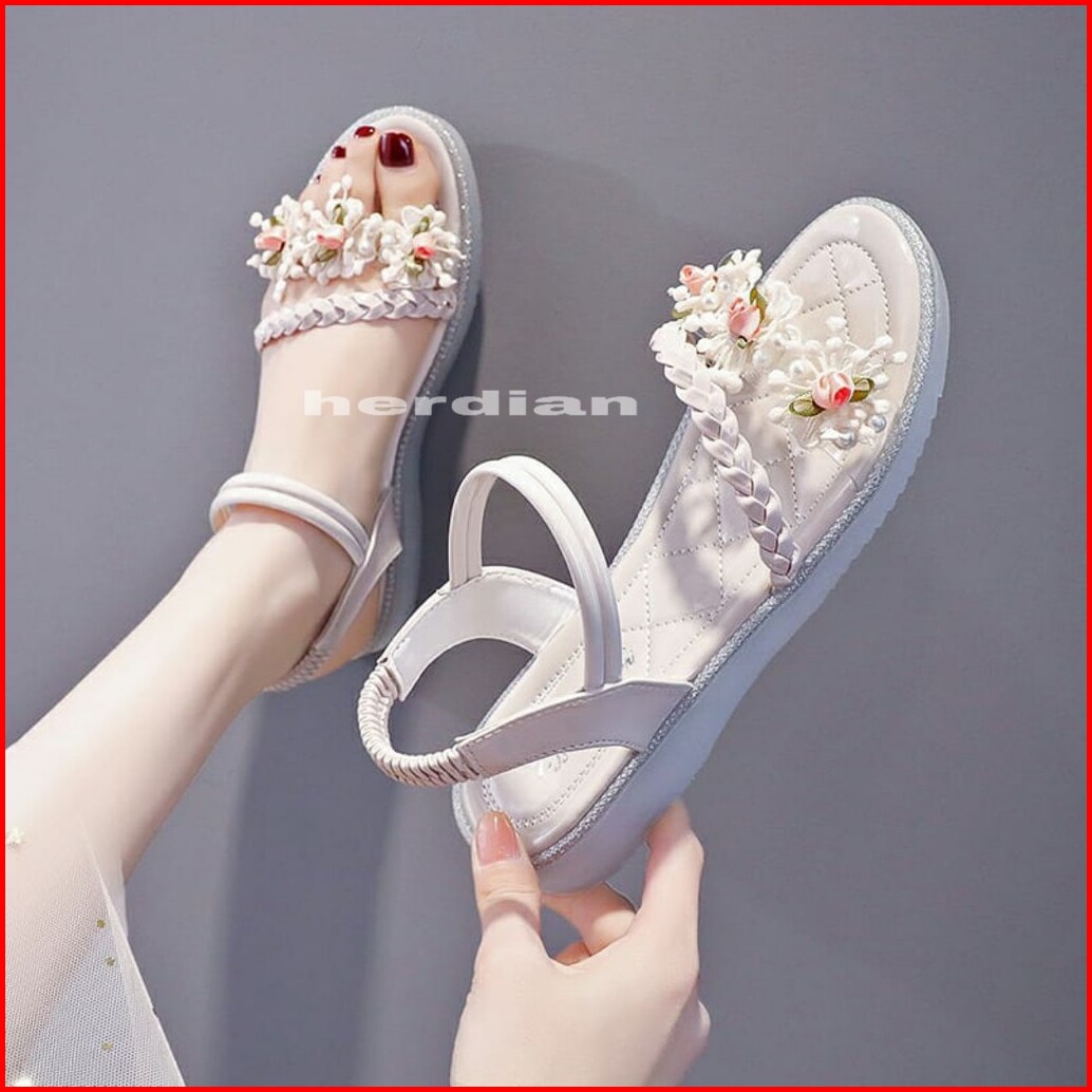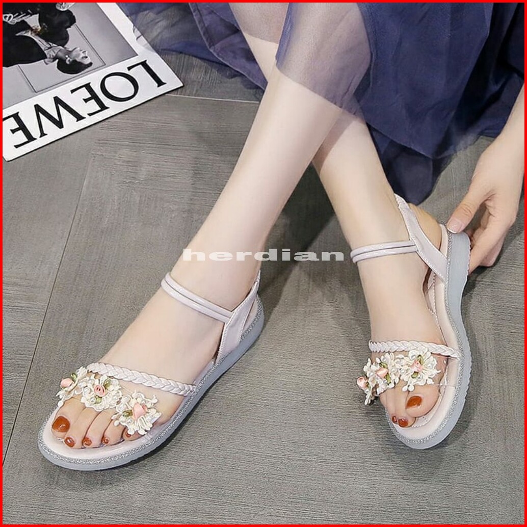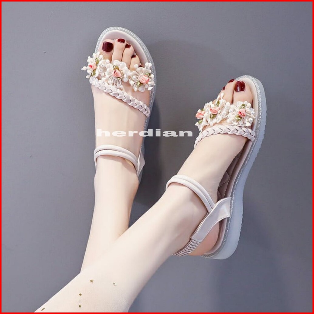 Yen Rama 01 Sandal Wedges Tali Bunga Wanita