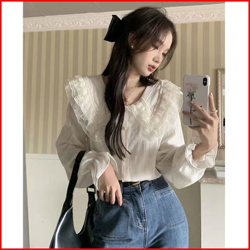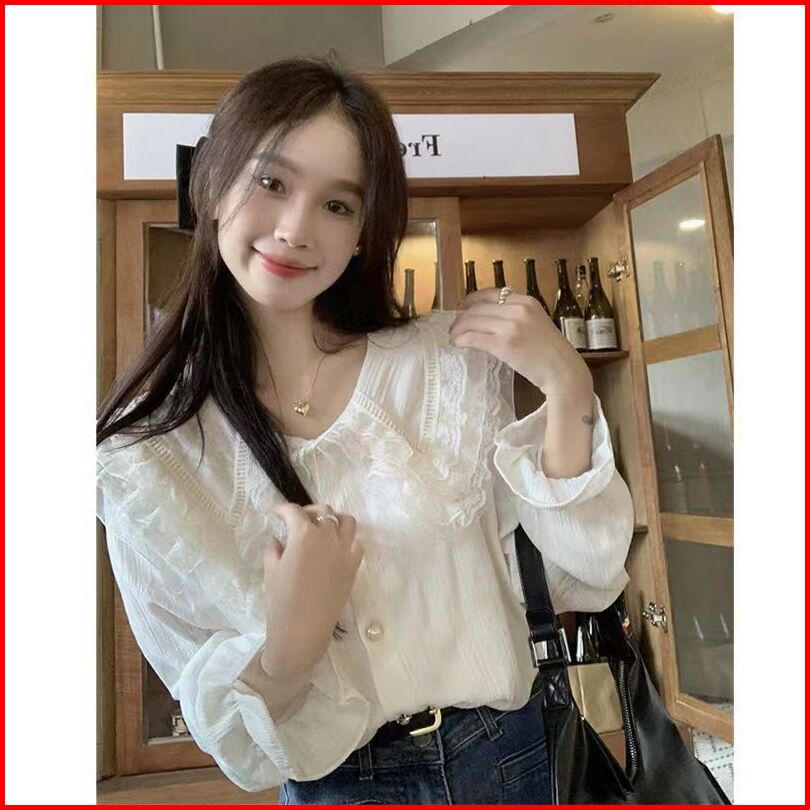 Zura Blouse Atasan Wanita Lengan Panjang Kerah Renda Hijab Friendly Korean Style