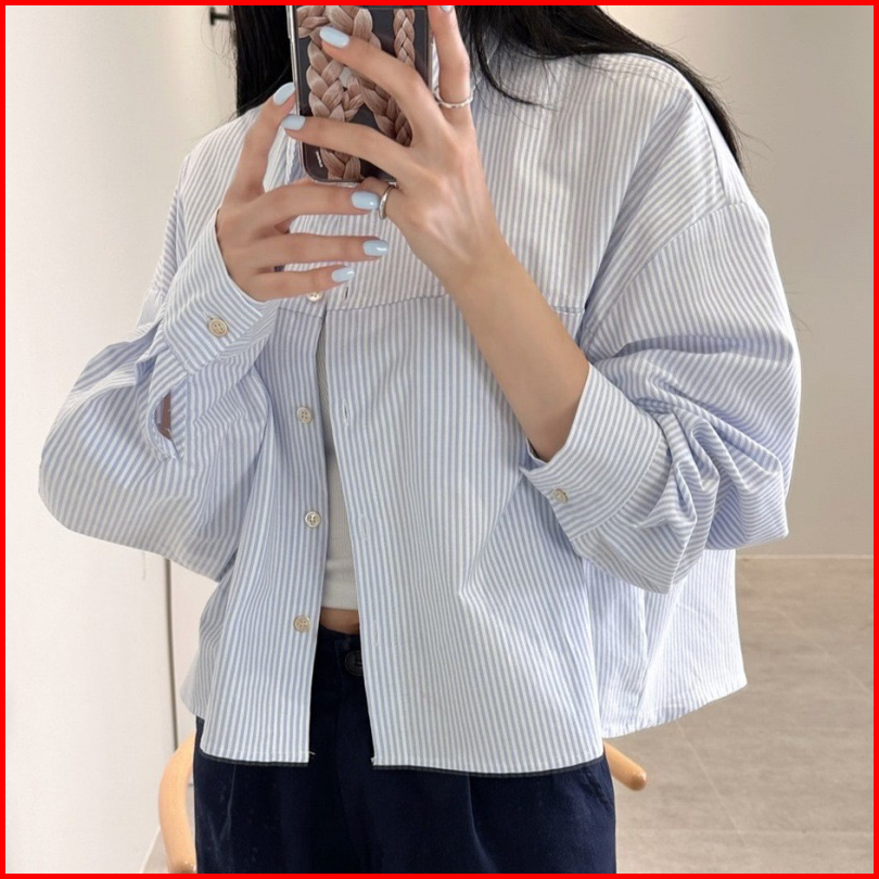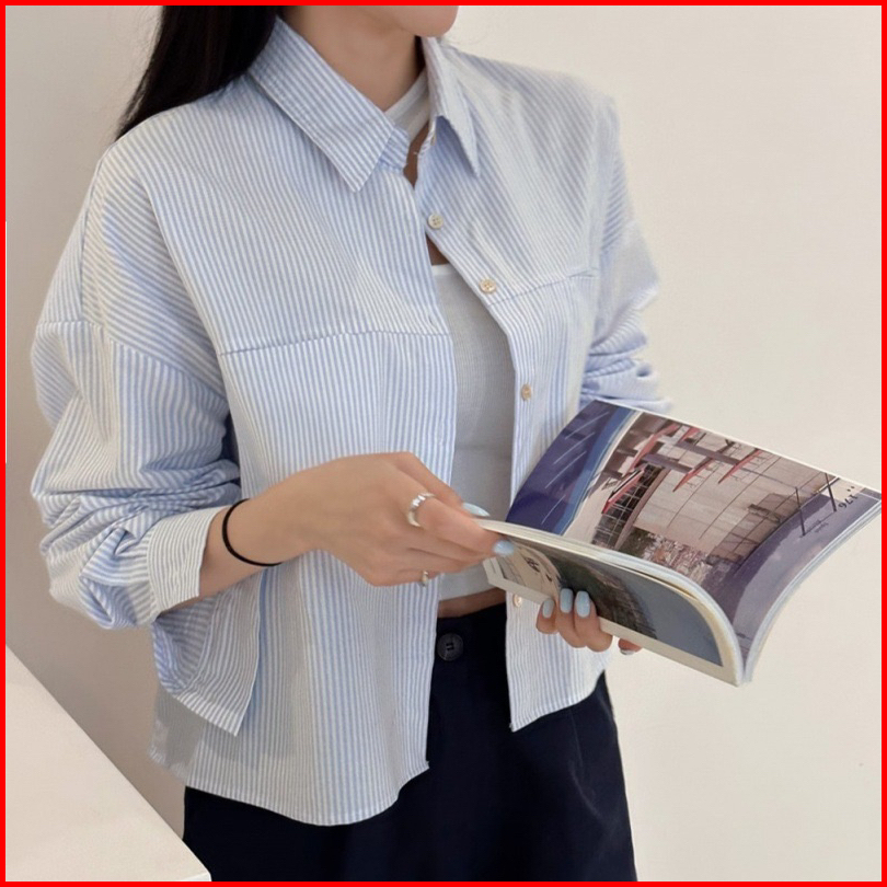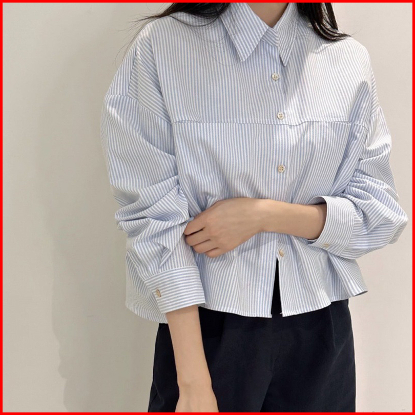 Fathia Kemeja Biru Garis Wanita Kantor Kerja Korea Style
