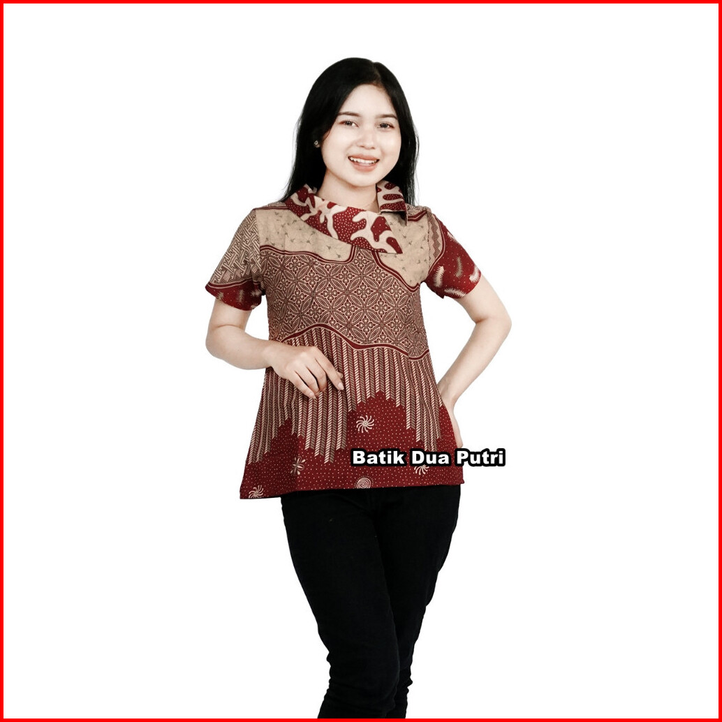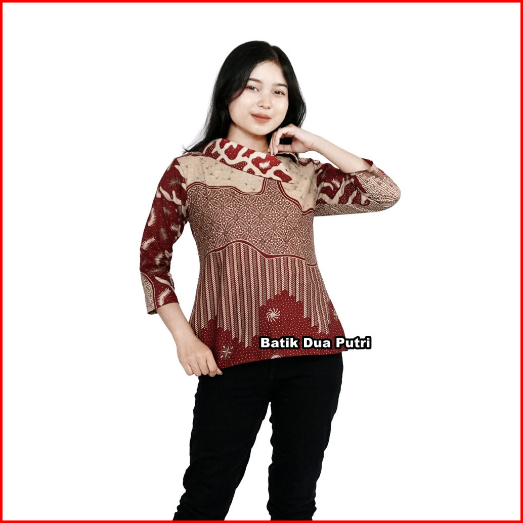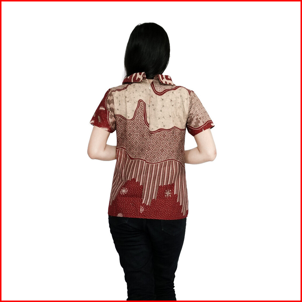 Atasan Blouse Batik Wanita Modern Couple Pasangan Batik Berkerah Sku Api