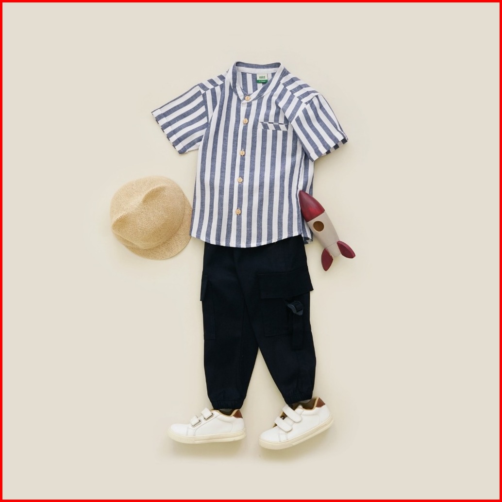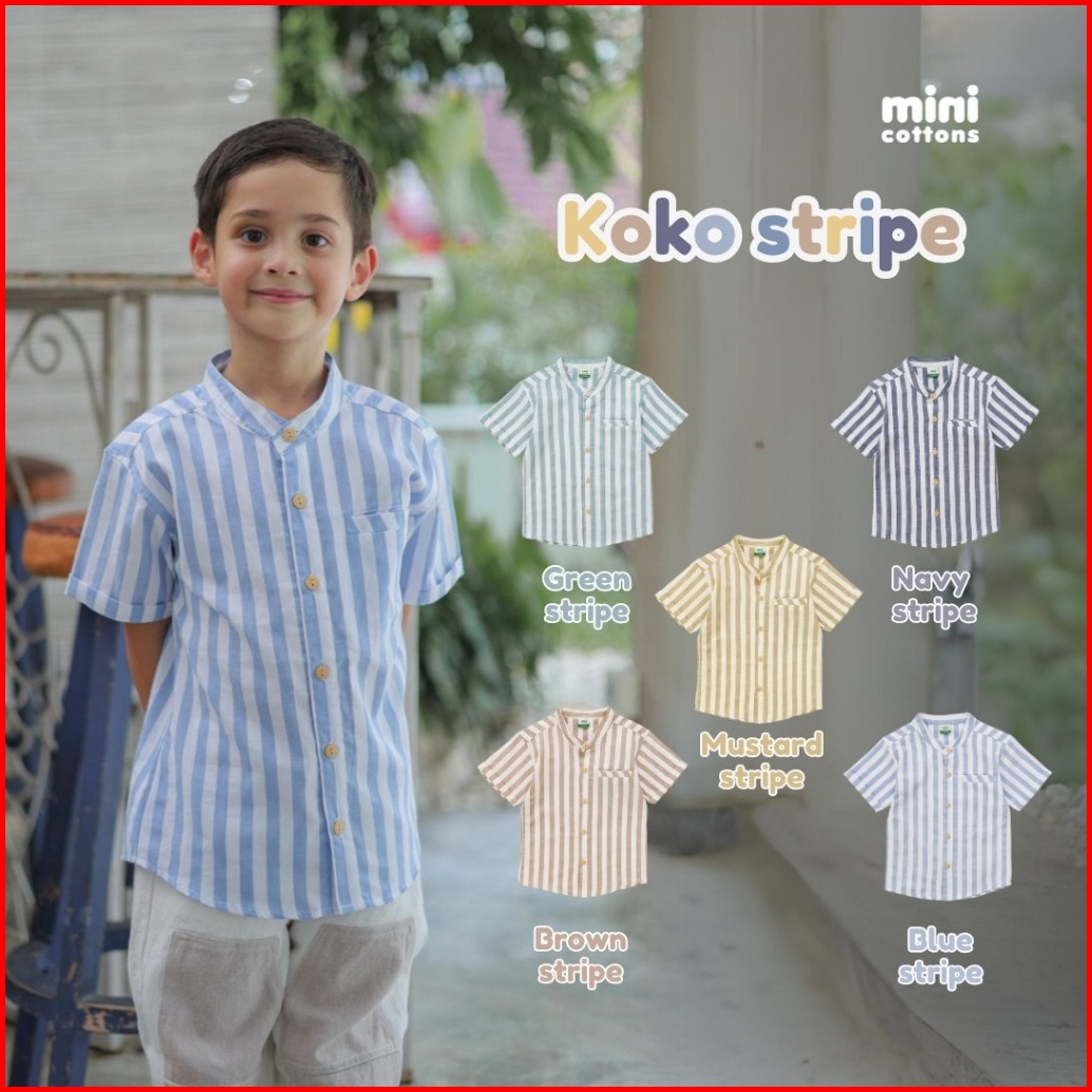 Minicottons Kemko Lebaran Kemeja Koko Kembar Ayah Anak Motif Salur Striped 1-12 Tahun Kids Shirt