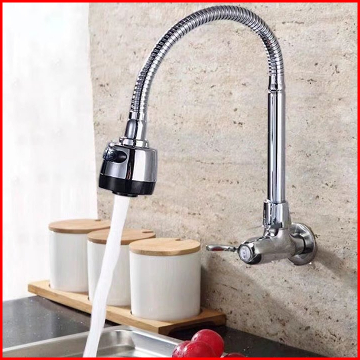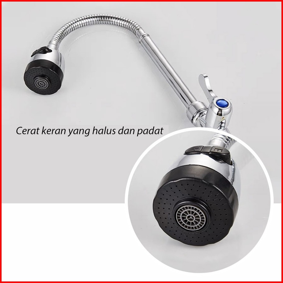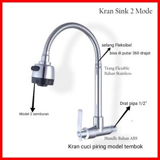Sus 304 Keran Air Tembok Sink Cuci Piring Dapur Fleksibel 2 Mode Keran Cuci Piring Angsa 1 2 Inch