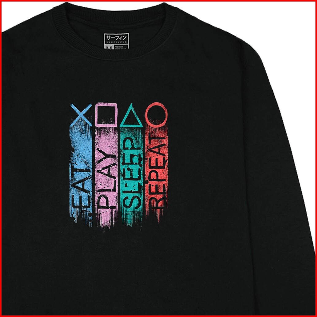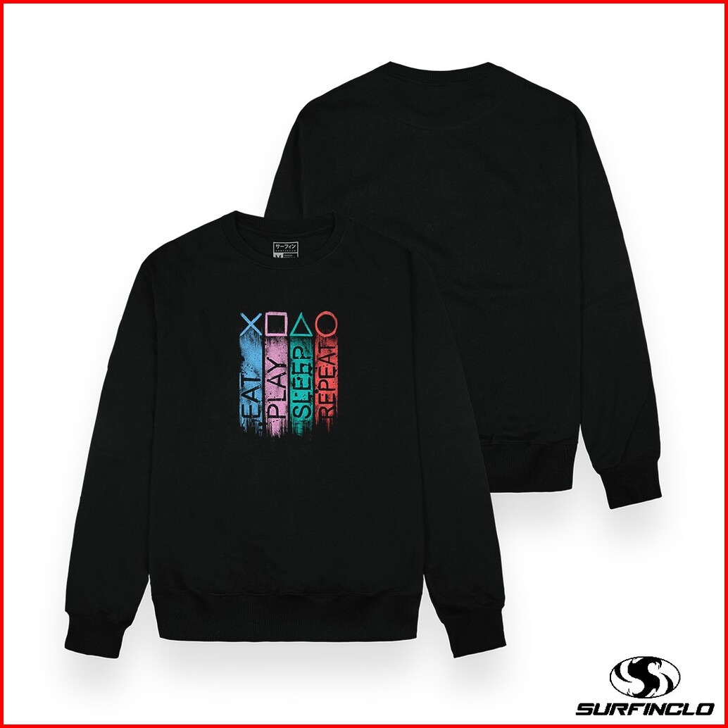 Surfinclo Crewneck Sweatshirt Sweater Black Eat Play Sleep Repeat Bahan Katun Fleece S M L Xl Xxl