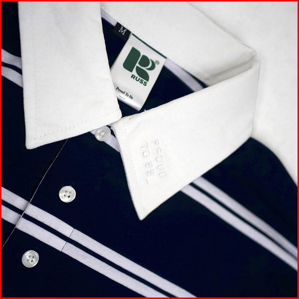 Russ Poloshirt Rugby Pria Stripe Garis Scrum Navy Blue Up To Big Size