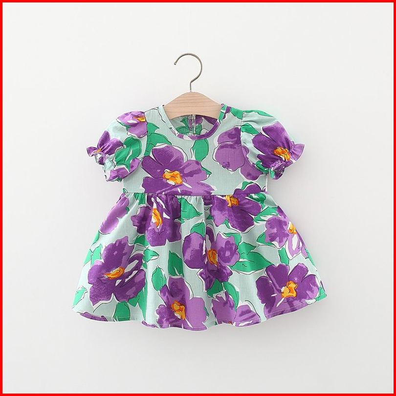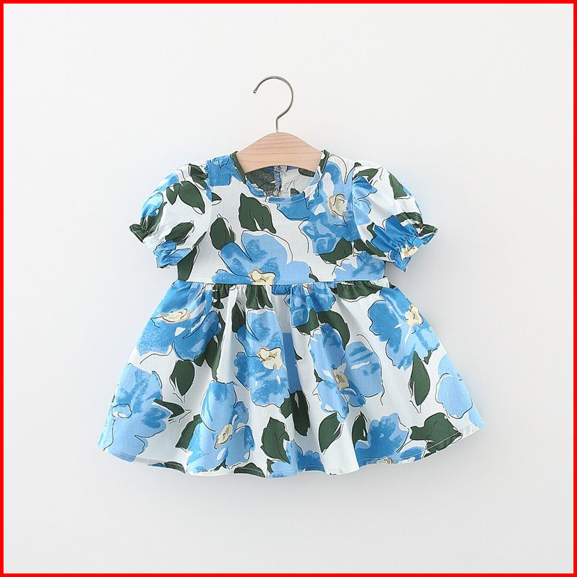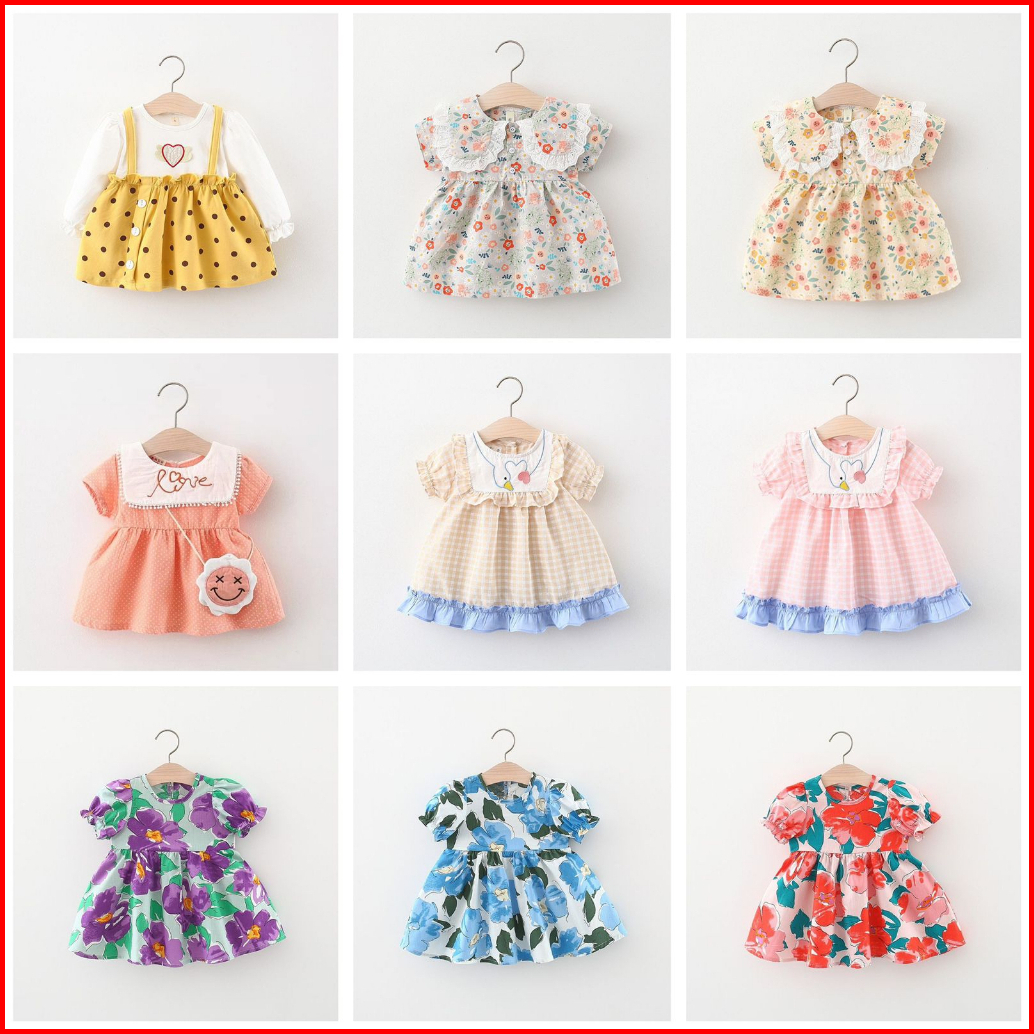 Dress Bayi Perempuan Lucu 036 Bulan Gaun Harian Pesta Motif Bunga Polos Cantik