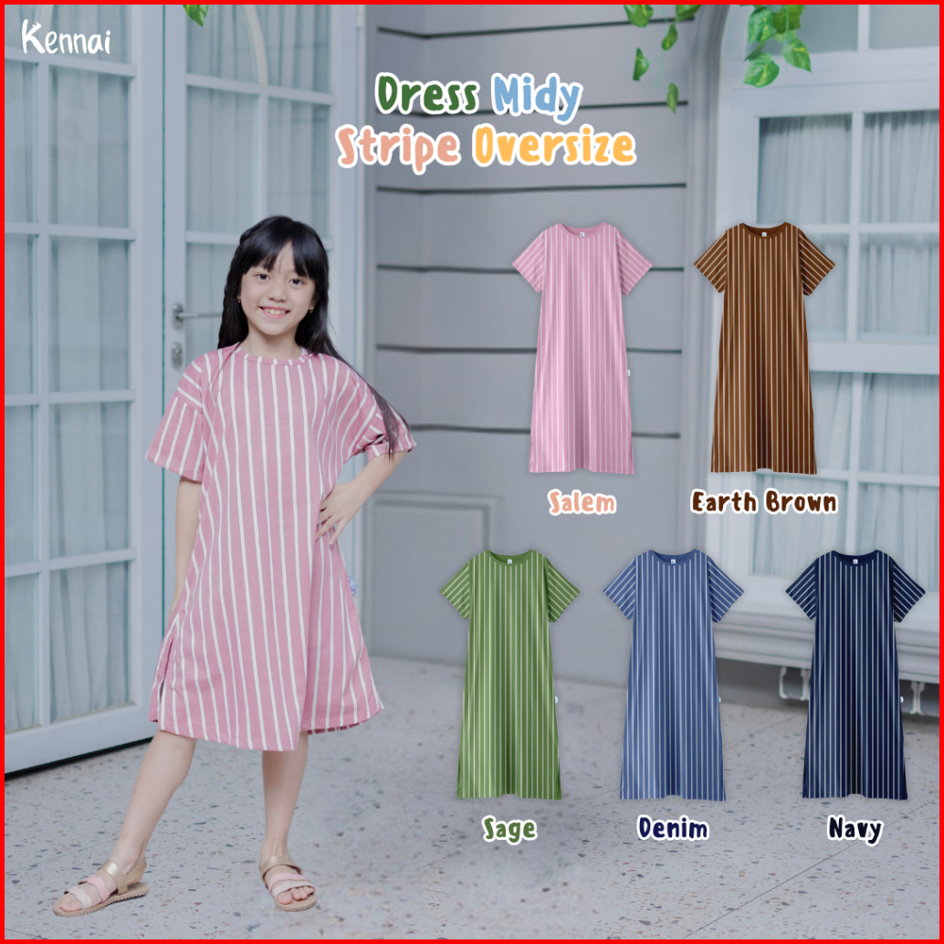 Clearance Diskon 50 Kennai Kids Dress Midy Stripe Oversize Anak Perempuan 1-12 Tahun