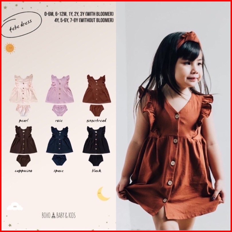 Bohopanna Febe Dress Anak Size 0-8y Dress Anak Perempuan Lucu Bahan Katun Adem Lembut - Boho Baby