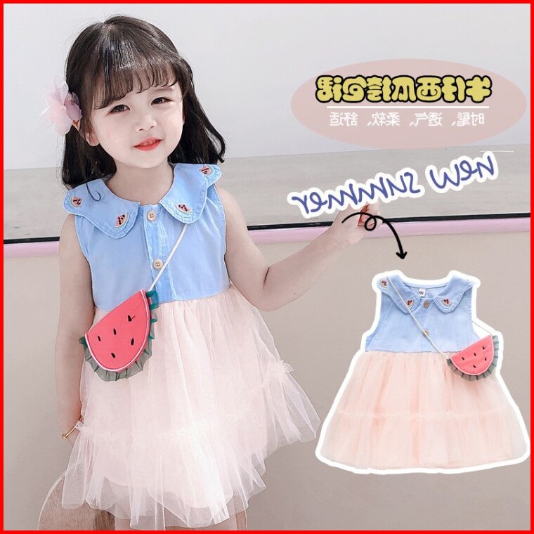 Promo 9.9 Heybaby Dress Denim Tas Watermelon 203 Ebv Baju Dress Anak Perempuan Im Model Gaun