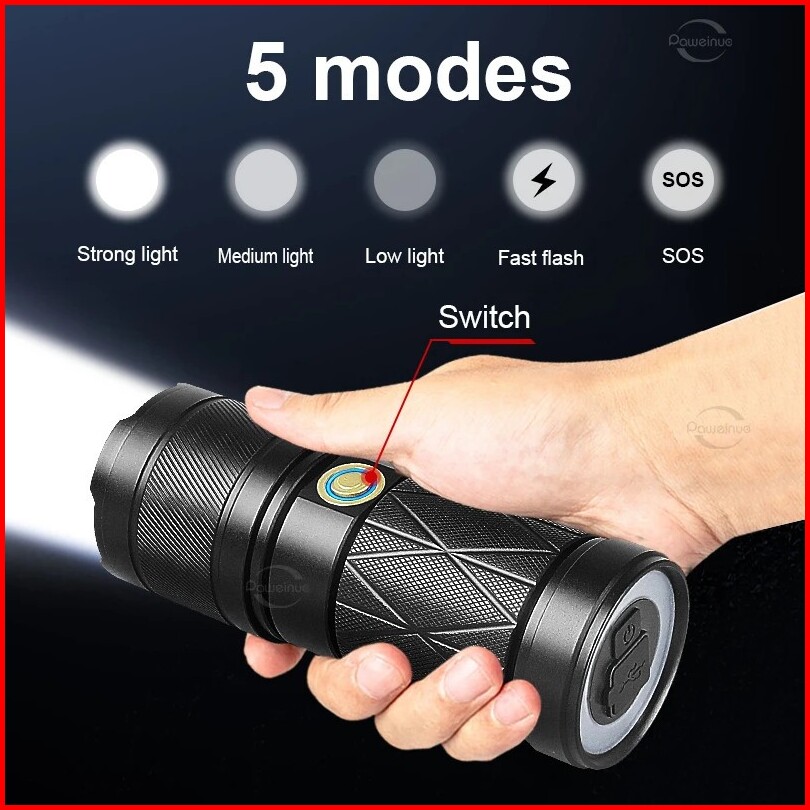 Senter Super Terang Waterproof Led Tactical Anti Air Lampu Swat Zoom Murah Swat Police Kapasitas Tinggi Waterproof Outdo
