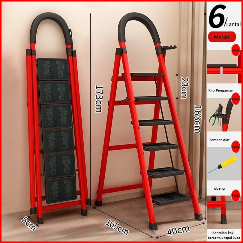 3-6 Step Tangga Lipat Multifungsi Baja Karbon Tebal Anti Licin Pegangan Tangan Tangga Bisa Dilepas