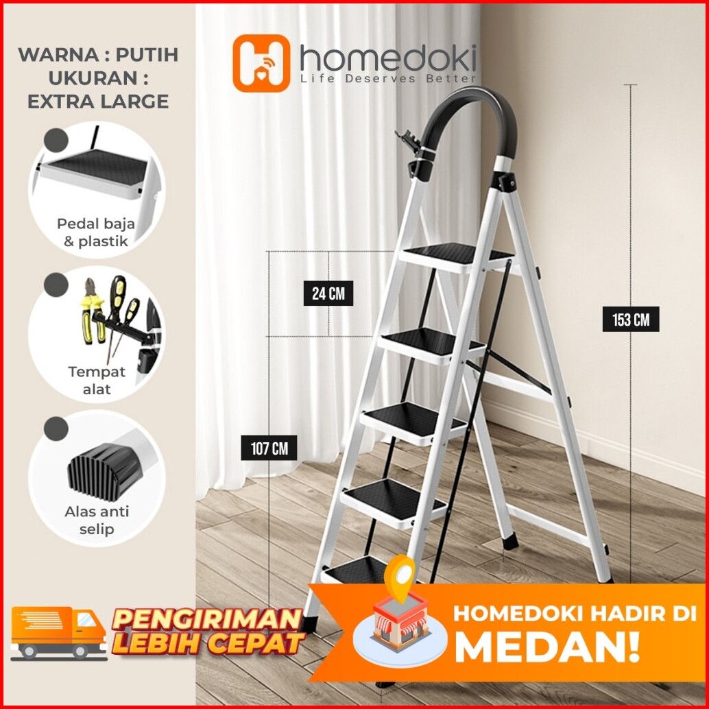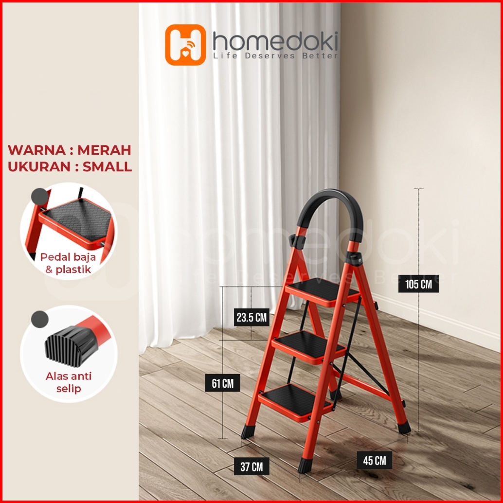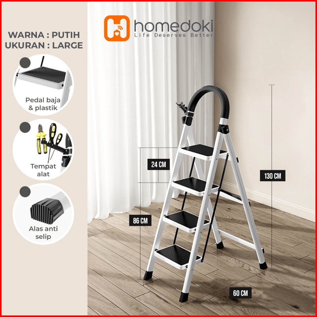 Homedoki Tangga Rumah Lipat Tangga Besi Lipat 3 4 Step Household Steel Ladder Tangga Lipat Aluminium 4 Step Premium Ladd