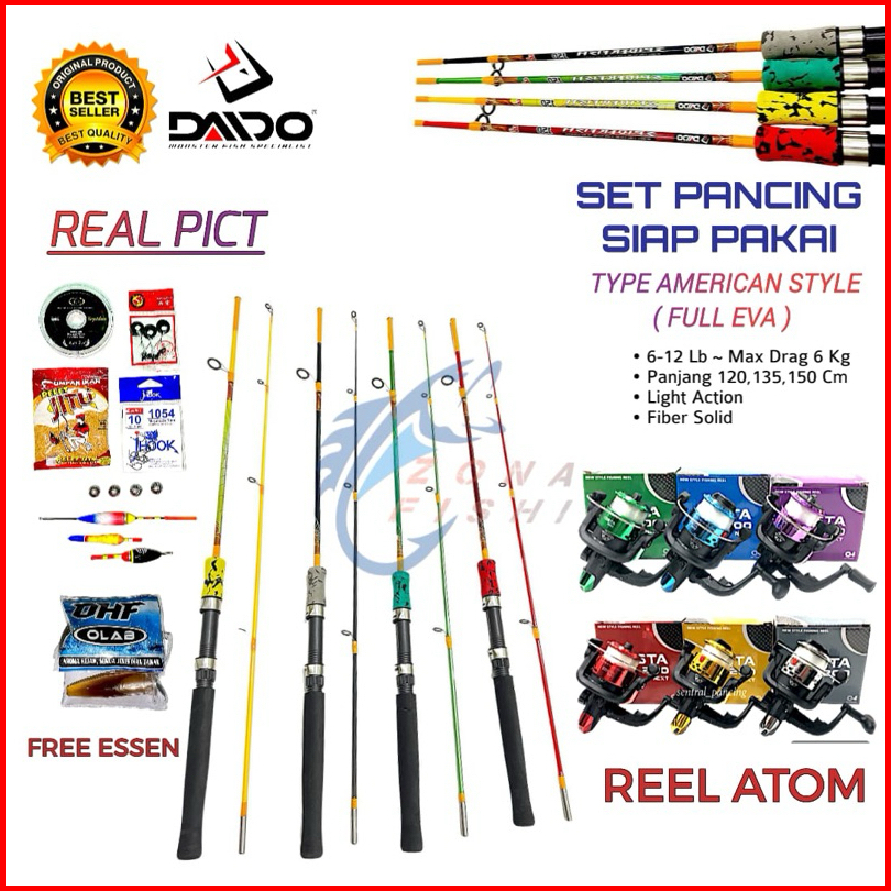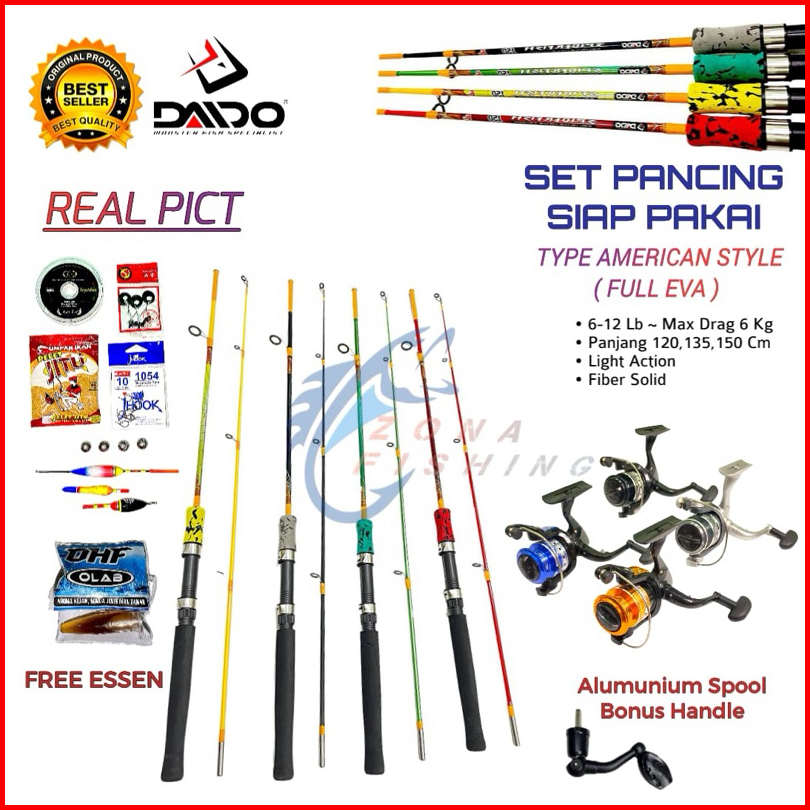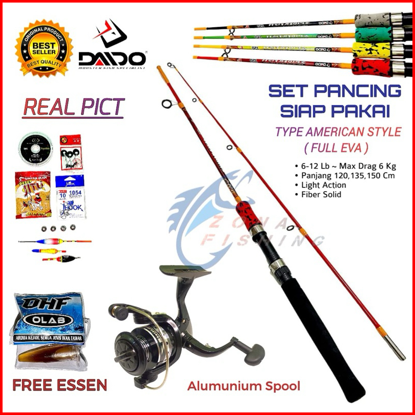Fullset Pancing Joran Daido Full Eva 120-165 Cm Fiber Solid Bonus Essen