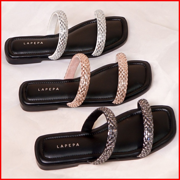 Lapepa Yuk - Jasmine Sandal Wanita Teplek Mewah Blink Kristal Size 36 - 40 Sendal Slop Flat Cewek Pergi Bling Rumahan