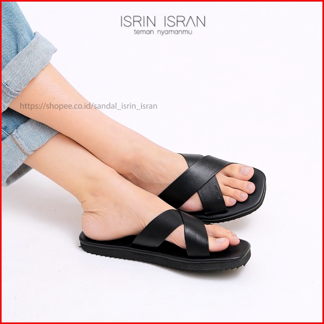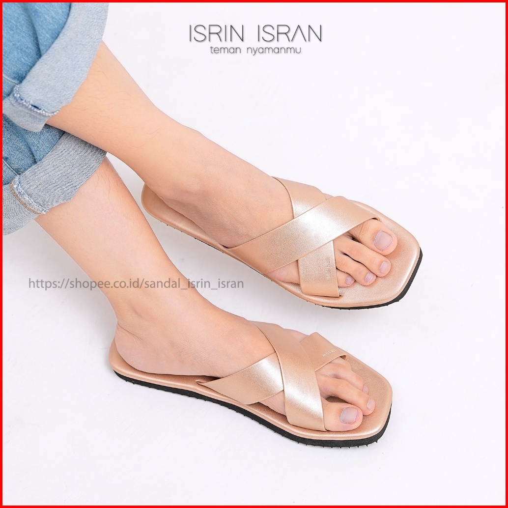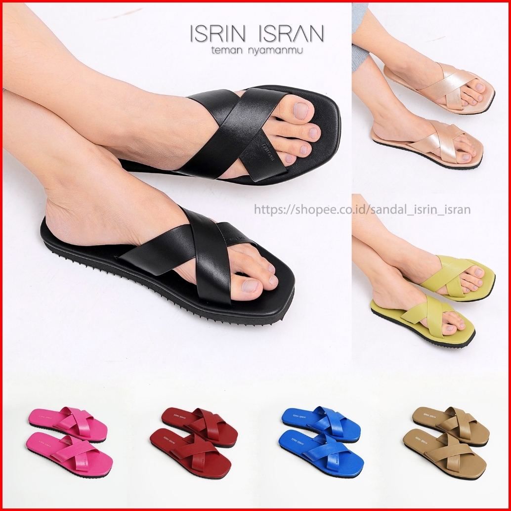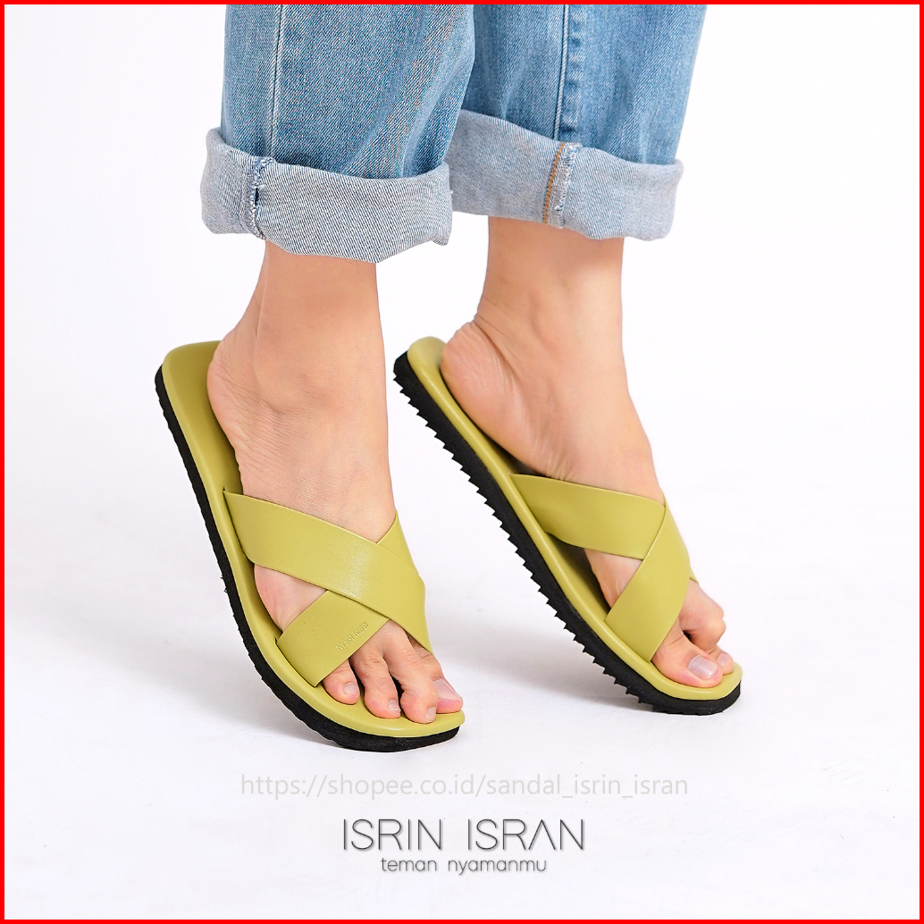Sandal Slip On Wanita Silang Sendal Teplek Isrin Isran Crossie